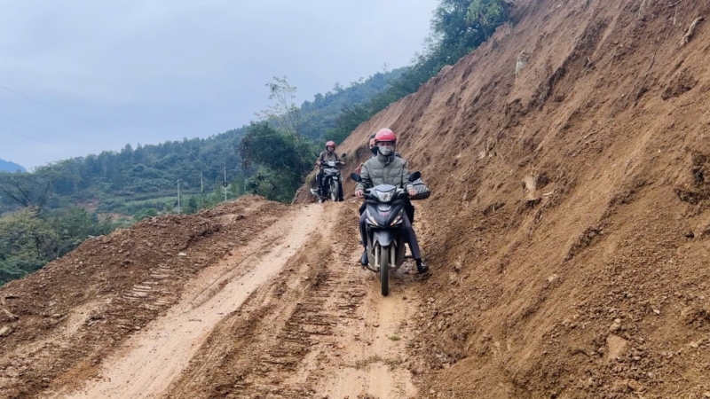 Các thầy cô vượt qua cung đường sạt lở, đảm bảo kịp giờ lên lớp.