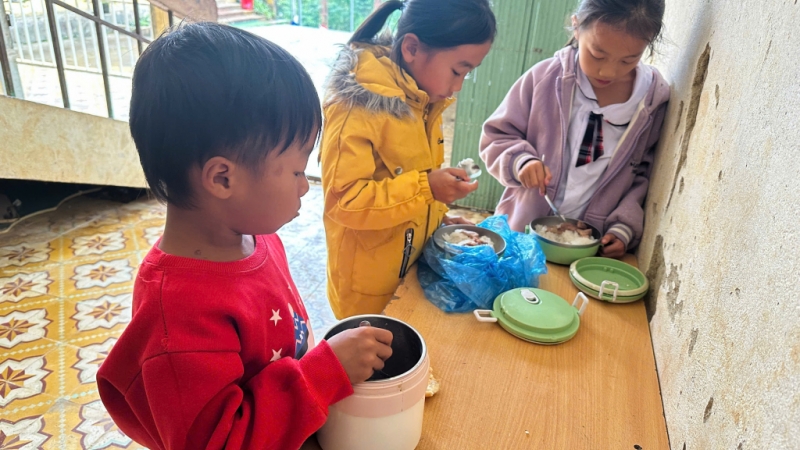 Nhiều em chỉ có mì tôm sống cho bữa trưa.