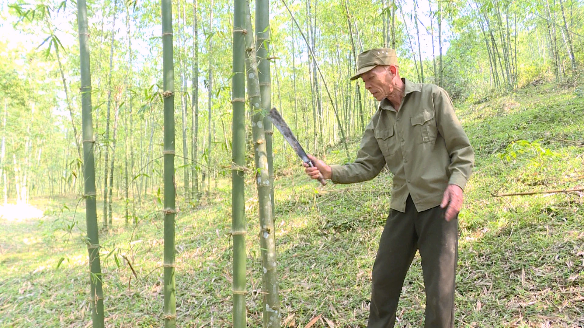 Ông Lương Cao Điểm chăm sóc rừng luồng.