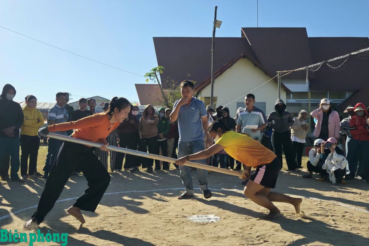 Môn đẩy gậy có nhiều phụ nữ tham gia. Ảnh: Thủy Lê