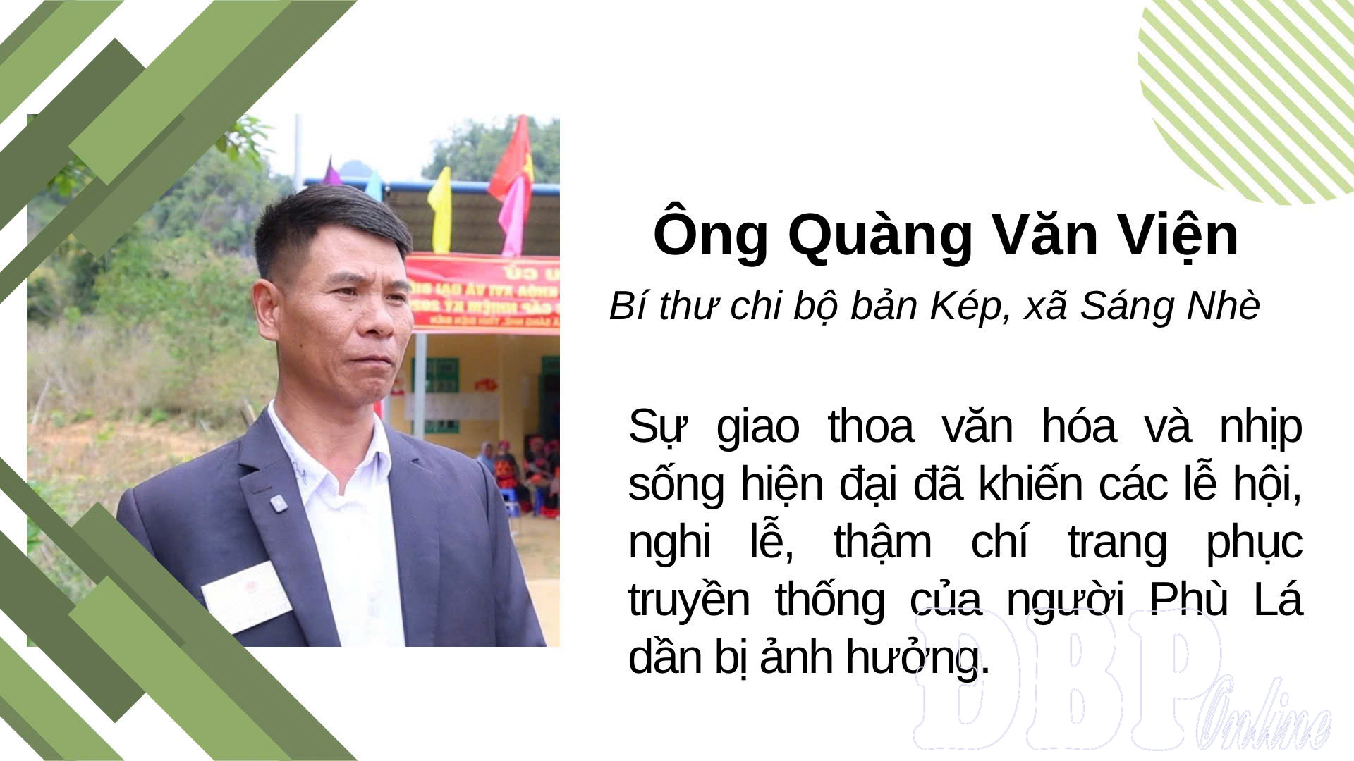 Để các giá trị văn hóa truyền thống dân tộc Phù Lá được bảo tồn bền vững, yếu tố then chốt vẫn là con người, những chủ thể của di sản. Khi mỗi người dân hiểu rõ giá trị văn hóa của dân tộc mình, tự hào và chủ động gìn giữ, những nét đẹp truyền thống sẽ tiếp tục được trao truyền qua các thế hệ. Hành trình “hồi sinh” văn hóa truyền thống của người Phù Lá còn nhiều gian nan, song với sự quan tâm của các cấp, ngành và sự đổi thay về nhận thức của cộng đồng, những giá trị văn hóa quý báu ấy sẽ được bảo tồn, phát huy, góp phần làm giàu thêm bản sắc văn hóa đa dạng của cộng đồng các dân tộc Điện Biên.