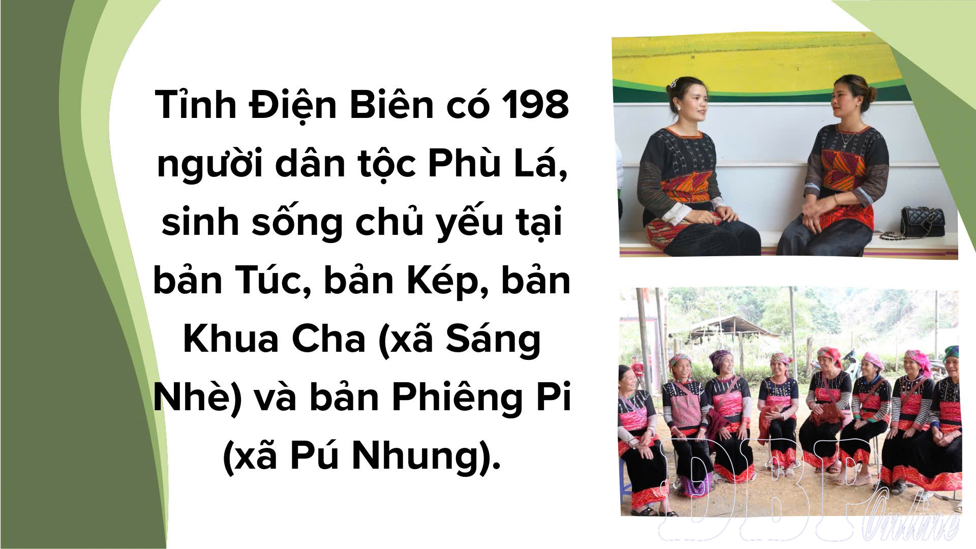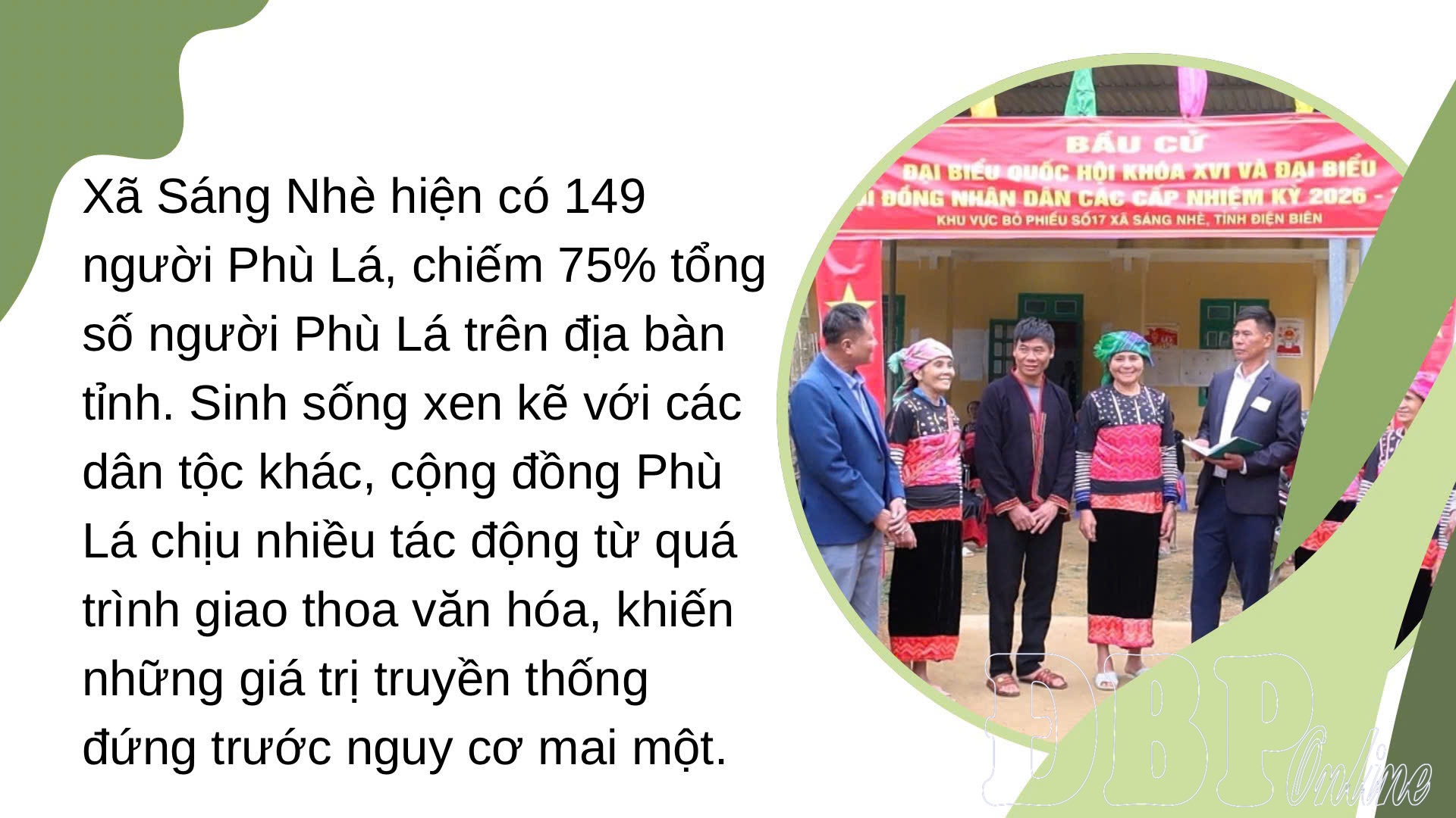 Theo thống kê, đến hết năm 2025, toàn tỉnh Điện Biên có 198 người dân tộc Phù Lá, sinh sống chủ yếu tại xã Sáng Nhè và xã Pú Nhung. Với quy mô dân số ít, lại sống xen cư với các dân tộc khác như: Mông, Thái, Dao… văn hóa Phù Lá chịu nhiều ảnh hưởng. Không chỉ trang phục, nhiều phong tục, tập quán, nghi lễ truyền thống của người Phù Lá dần bị mai một. Trong các nghi lễ cưới hỏi, ma chay hay lễ hội, nhiều yếu tố truyền thống bị giản lược hoặc thay thế. Trang phục cũng chịu ảnh hưởng từ các dân tộc lân cận. Tình trạng kết hôn khác dân tộc diễn ra khiến việc duy trì phong tục riêng gặp nhiều khó khăn.