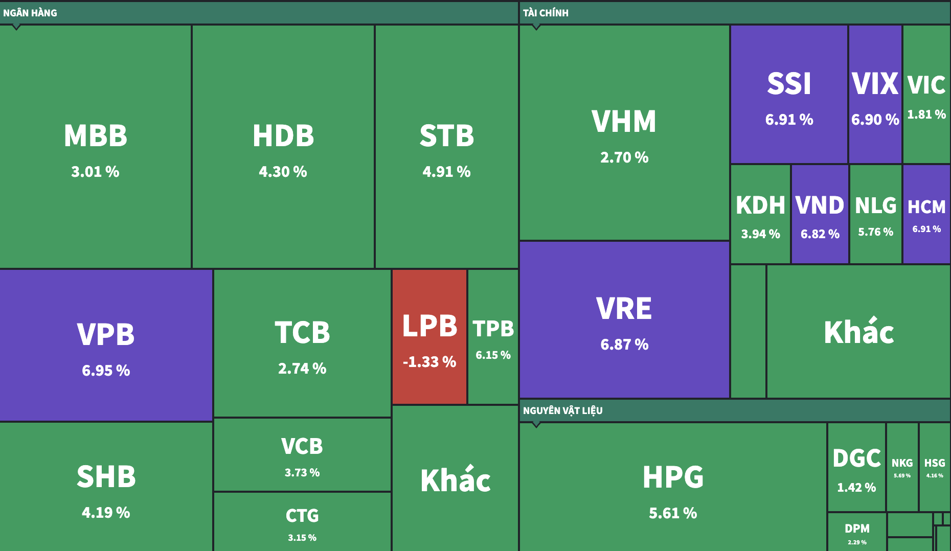 Bản đồ nhiệt nhóm tài chính phiên hôm nay.