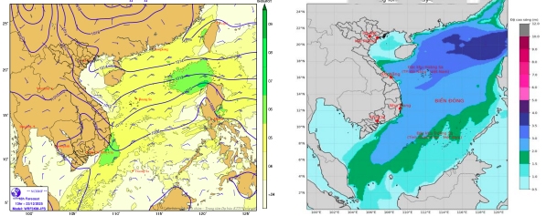 Bản đồ dự báo gió mạnh và bản đồ dự báo độ cao sóng.