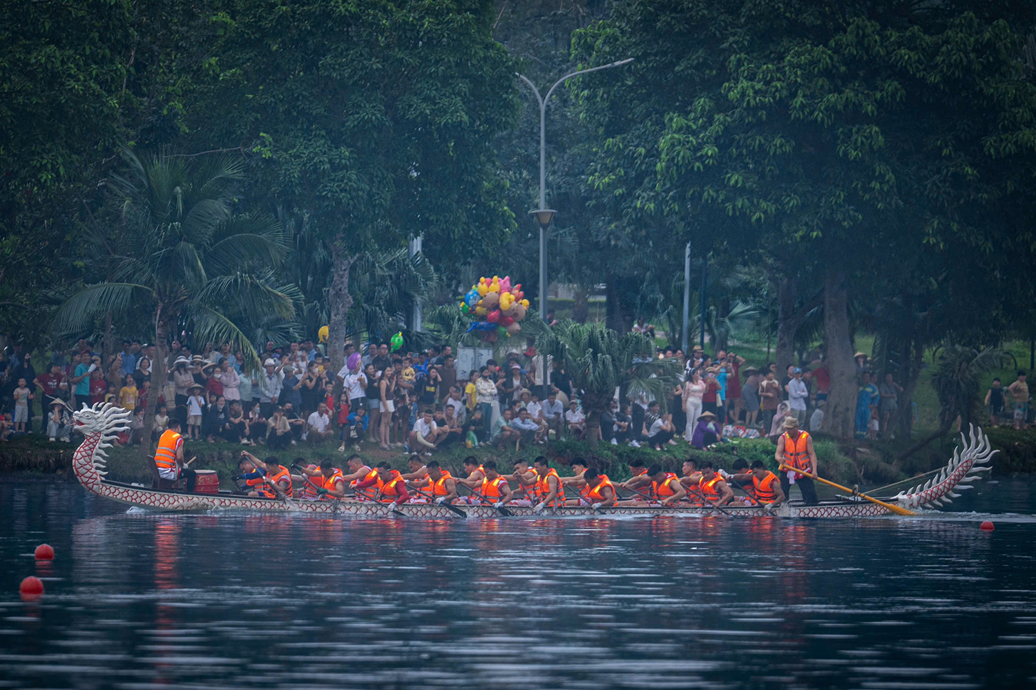 Các tay chèo thể hiện sức mạnh, quyết tâm giành chiến thắng. Ảnh: THÙY LINH