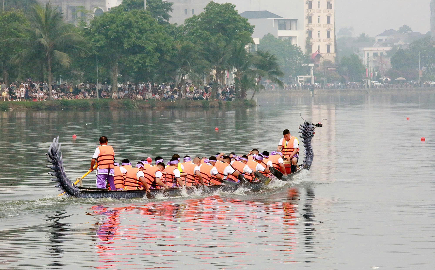 Bơi chải là hoạt động thể thao truyền thống mỗi dịp Giỗ Tổ Hùng Vương, Lễ hội Đền Hùng. Ảnh: THÙY LINH