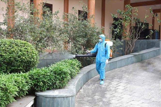 Cán bộ Trung tâm Kiểm soát bệnh tật tỉnh Phú Thọ phun phòng dịch bệnh khu vực Đền Hùng, đảm bảo phòng bệnh.