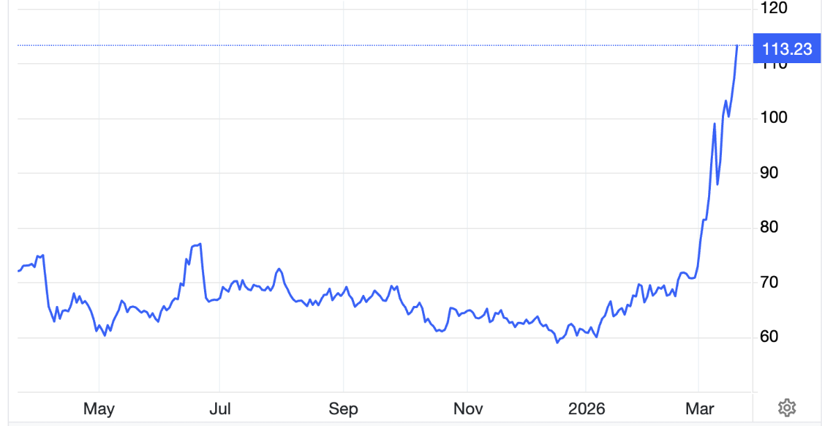 Giá dầu tại Mỹ đã tăng gần 50% kể từ khi Mỹ và Israel tấn công Iran vào cuối tháng trước, lên mức hơn 97 USD mỗi thùng, đẩy giá xăng bán lẻ tăng cao.