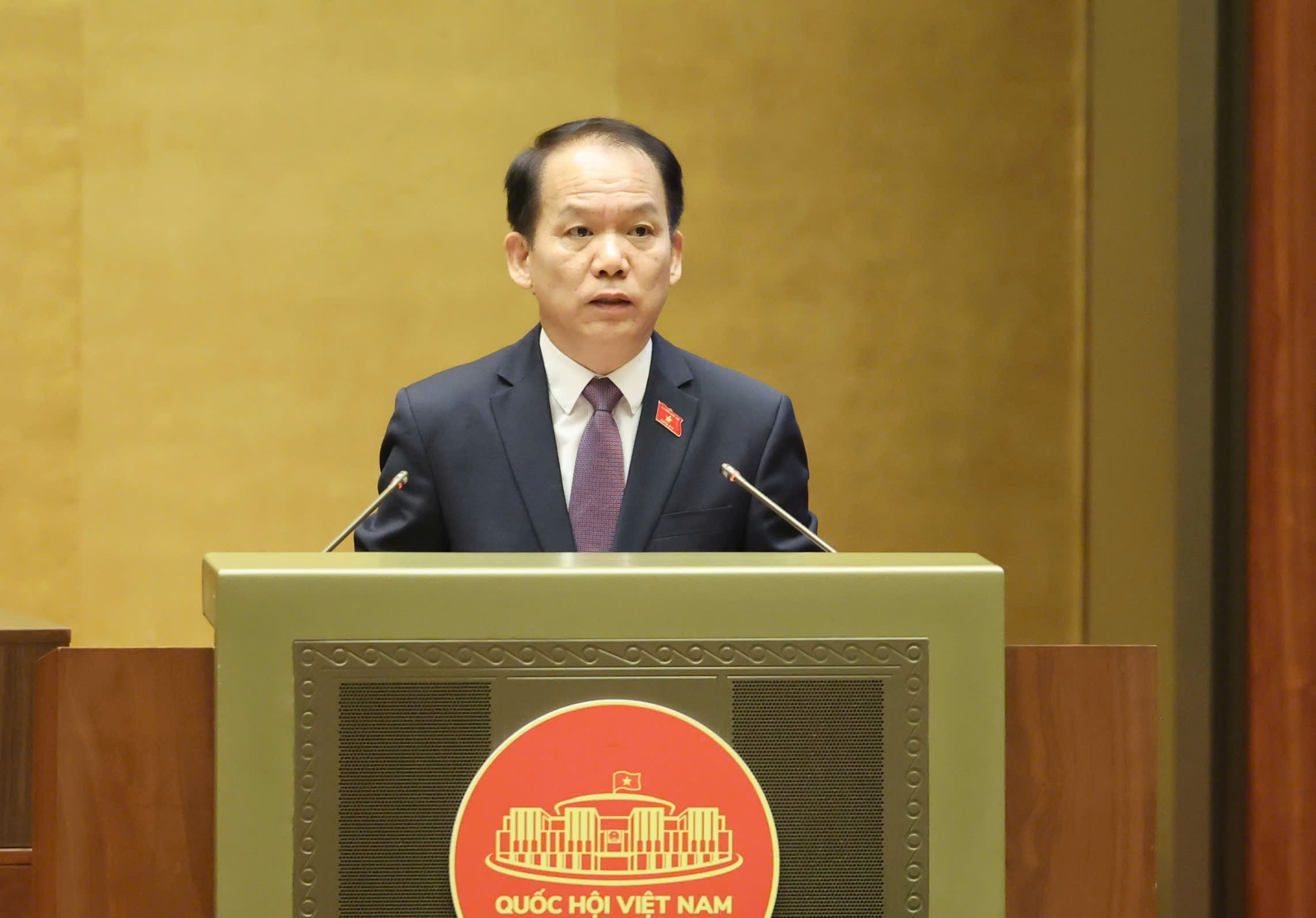 Bộ trưởng Bộ Tư pháp Hoàng Thanh Tùng phát biểu tiếp thu, giải trình về các dự thảo luật. Ảnh: QUANG PHÚC