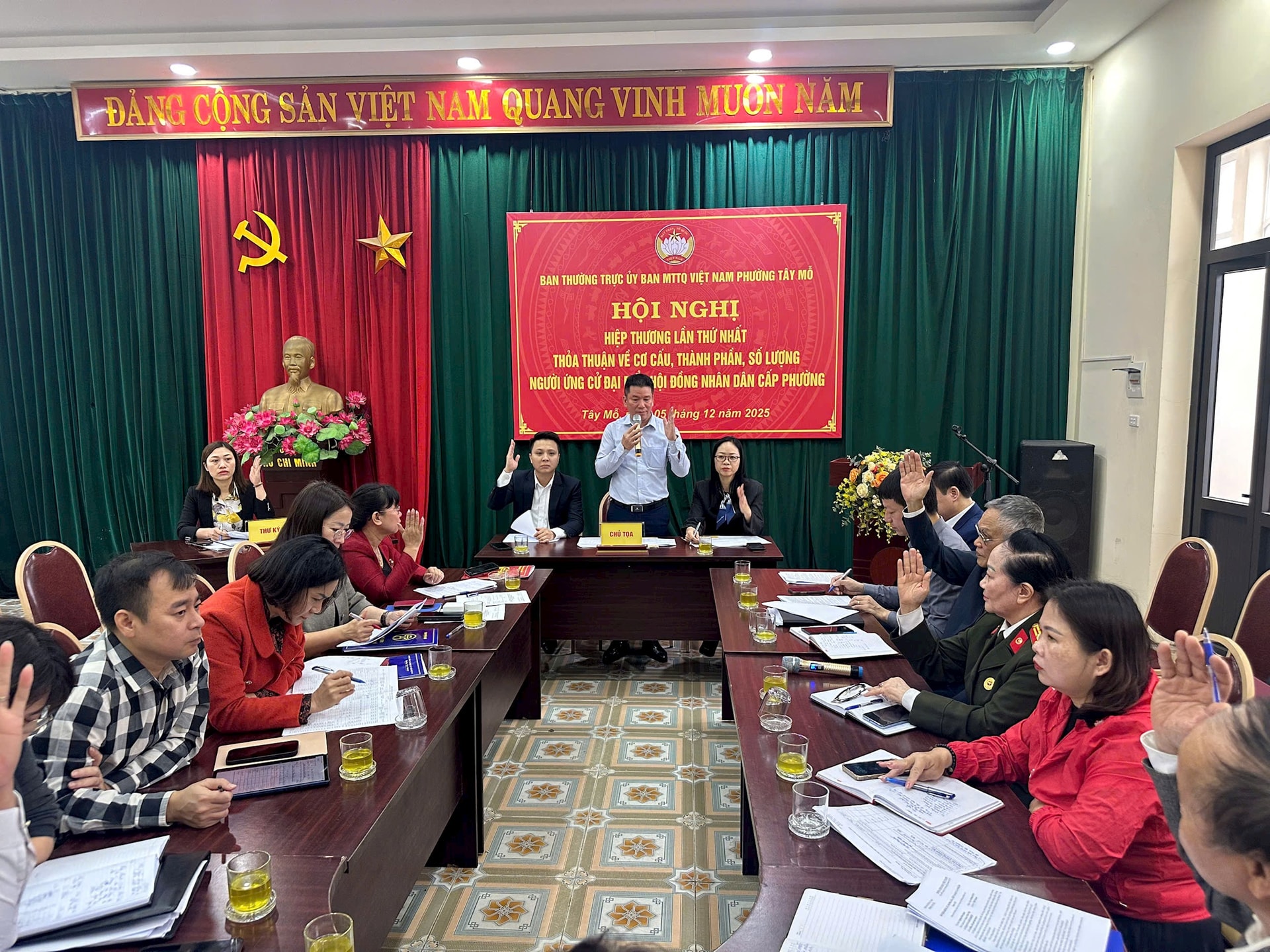 Chủ tịch Ủy ban Mặt trận Tổ quốc Việt Nam phường Tây Mỗ Nguyễn Ngọc Anh cho biết, công tác hiệp thương thỏa thuận về cơ cấu, thành phần, số lượng người được giới thiệu ứng cử đại biểu HĐND phường Tây Mỗ đã diễn ra trên tinh thần dân chủ, minh bạch, khách quan, đồng thời đảm bảo được số dư hợp lý, từ đó có thể lựa chọn được những người tiêu biểu, thực sự xứng đáng, có uy tín, năng lực, đáp ứng được yêu cầu, nhiệm vụ của HĐND phường Tây Mỗ nhiệm kỳ 2026-2031.