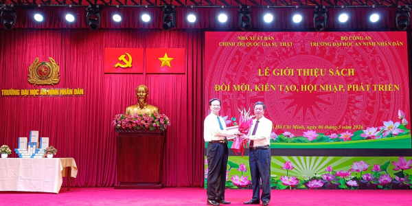 Đồng chí PGS.TS Vũ Trọng Lâm, Ủy viên Ban Chấp hành Đảng bộ các cơ quan Đảng Trung ương, Bí thư Đảng ủy, Giám đốc - Tổng Biên tập và Thiếu tướng Trần Văn Tuấn, Hiệu trưởng Trường Đại học ANND đồng chỉ trì buổi lễ.