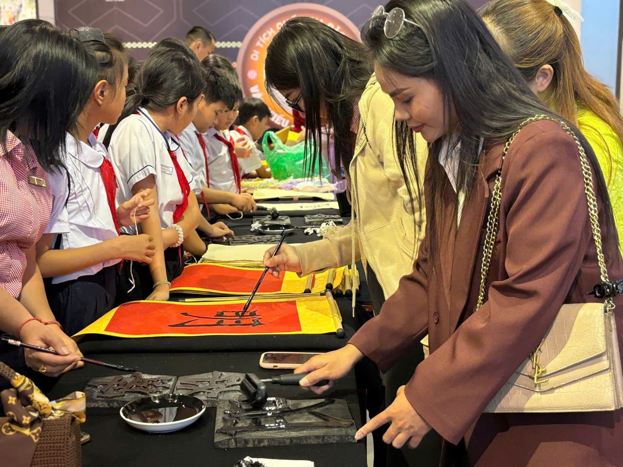 Bên cạnh phần trưng bày, triển lãm còn mang đến trải nghiệm di sản thú vị: tìm hiểu lớp học xưa của nho sinh, tập viết chữ Hán cổ, in mộc bản bia tiến sĩ, hay khám phá và đóng sách bằng giấy dó theo phương pháp truyền thống.