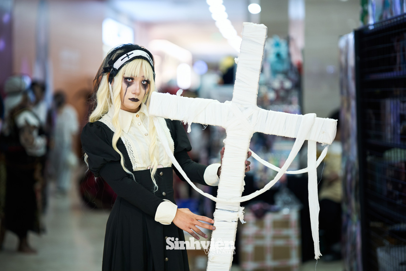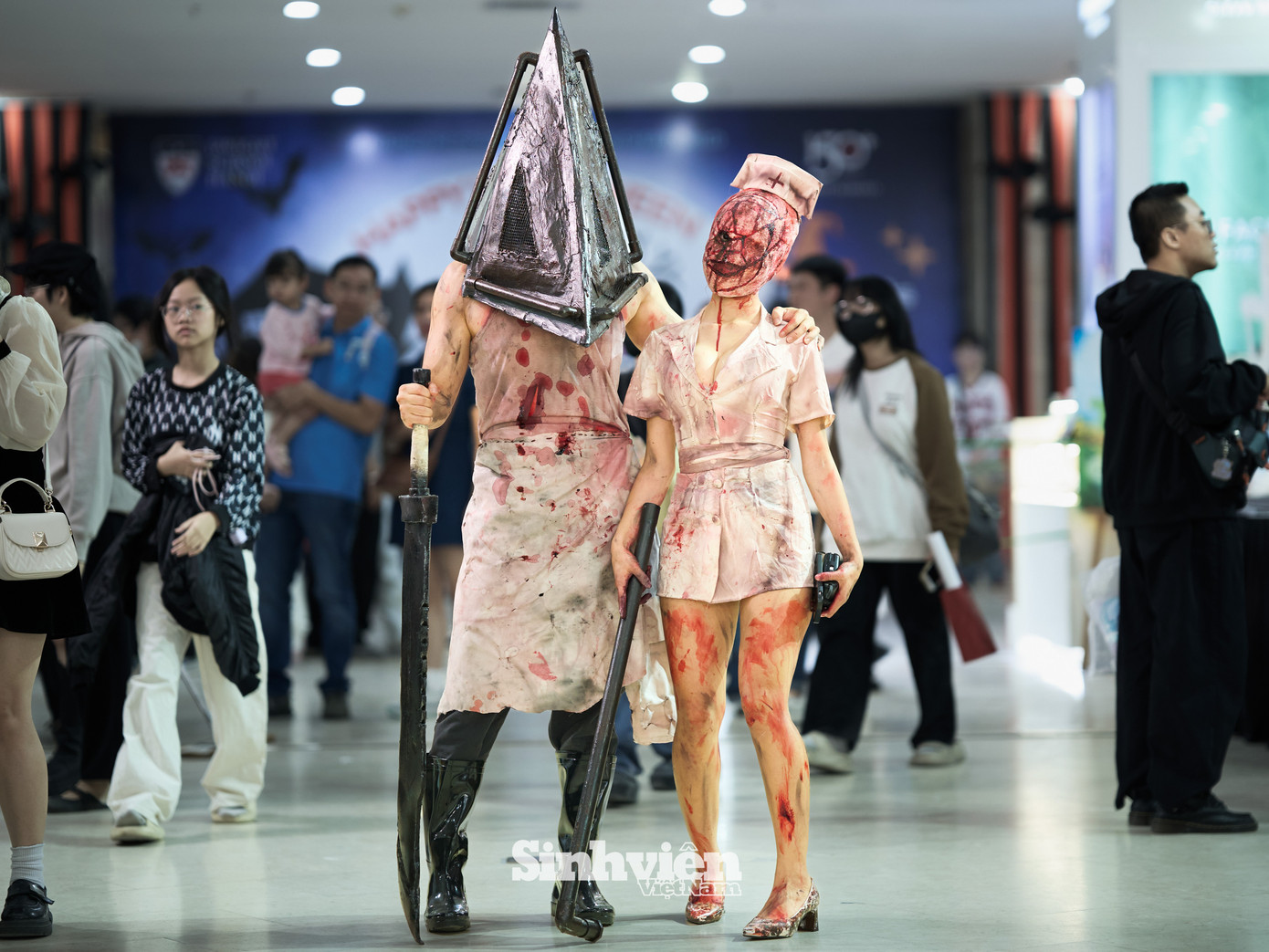 Thùy Tiên (2002, Hà Nội) cùng người bạn Hàn Quốc đã dành 1 tuần để chuẩn bị bộ đồ hóa trang Halloween, là 2 nhân vật trong tựa game kinh dị Silent Hill ra mắt cách đây hơn 20 năm. Ngoài cây kiếm trang trí được đặt mua, tất cả phụ kiện hóa trang đều do hai bạn tự làm với các chi tiết ấn tượng. Tiên chia sẻ, đây là lần đầu Tiên tham dự 1 buổi fest, giao lưu cosplay lớn như thế này và rất háo hức xem cách hóa trang của các bạn khác.