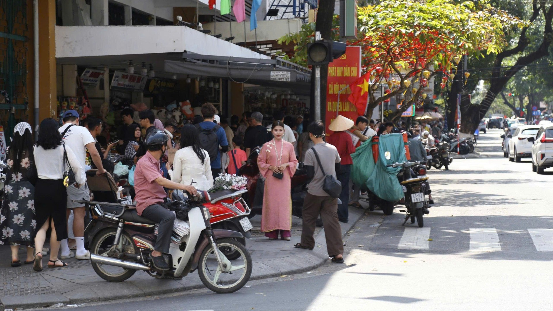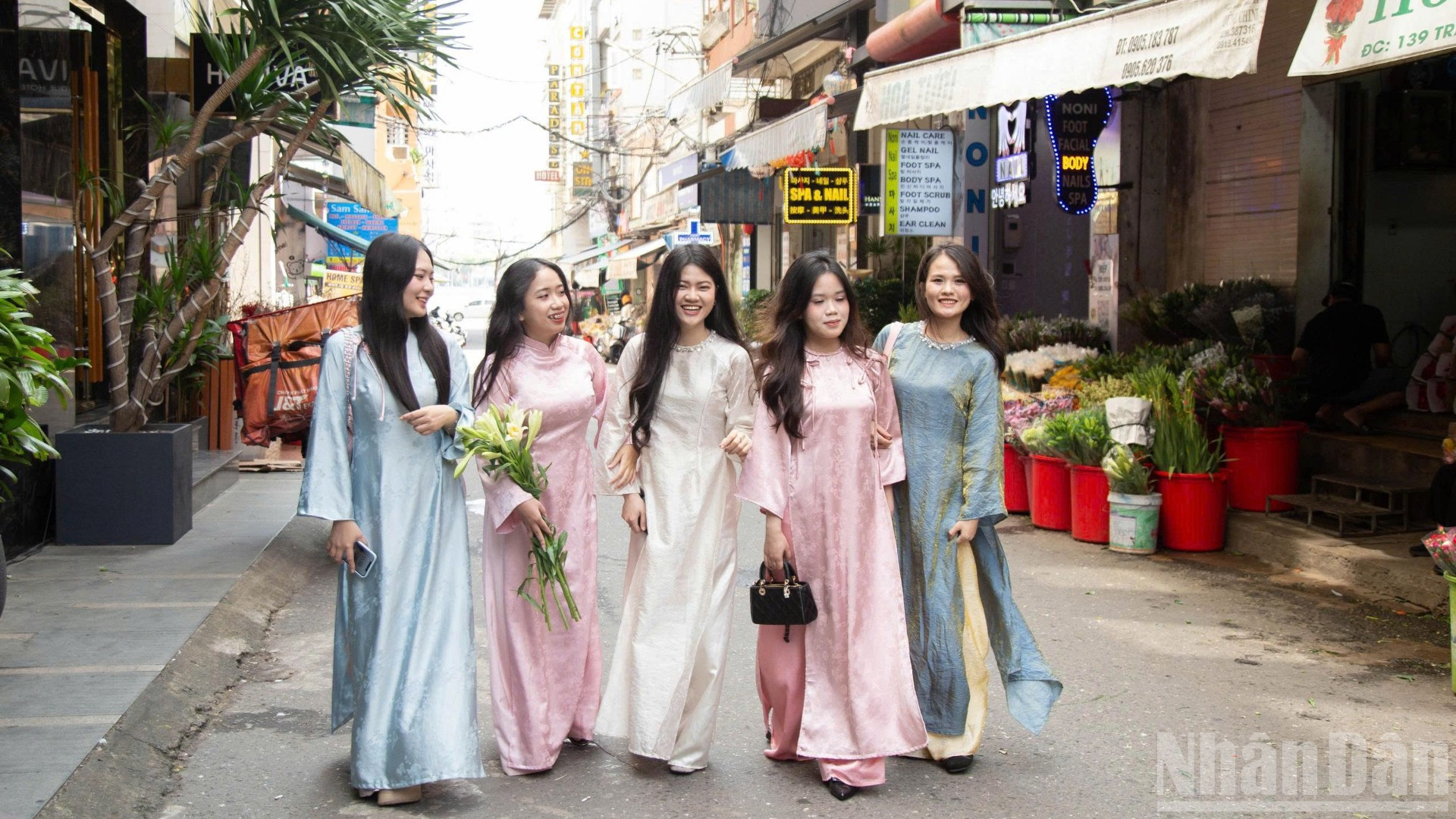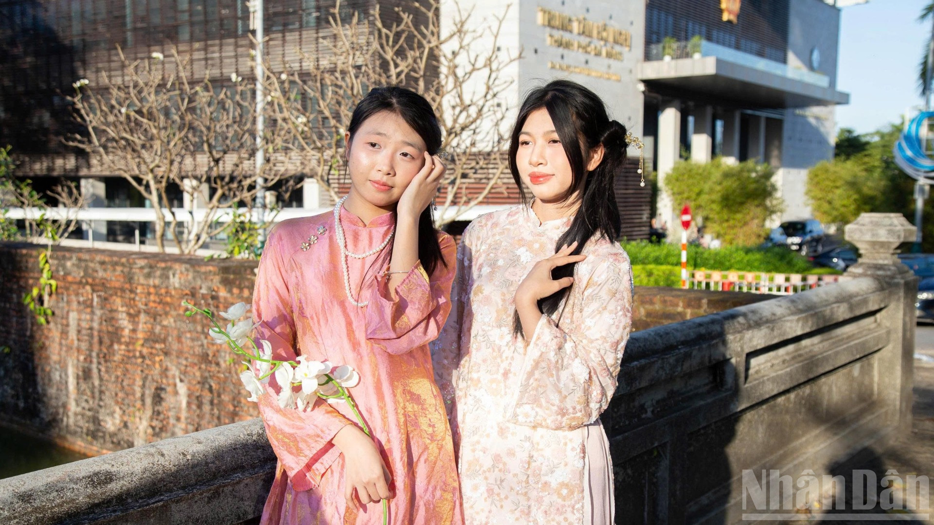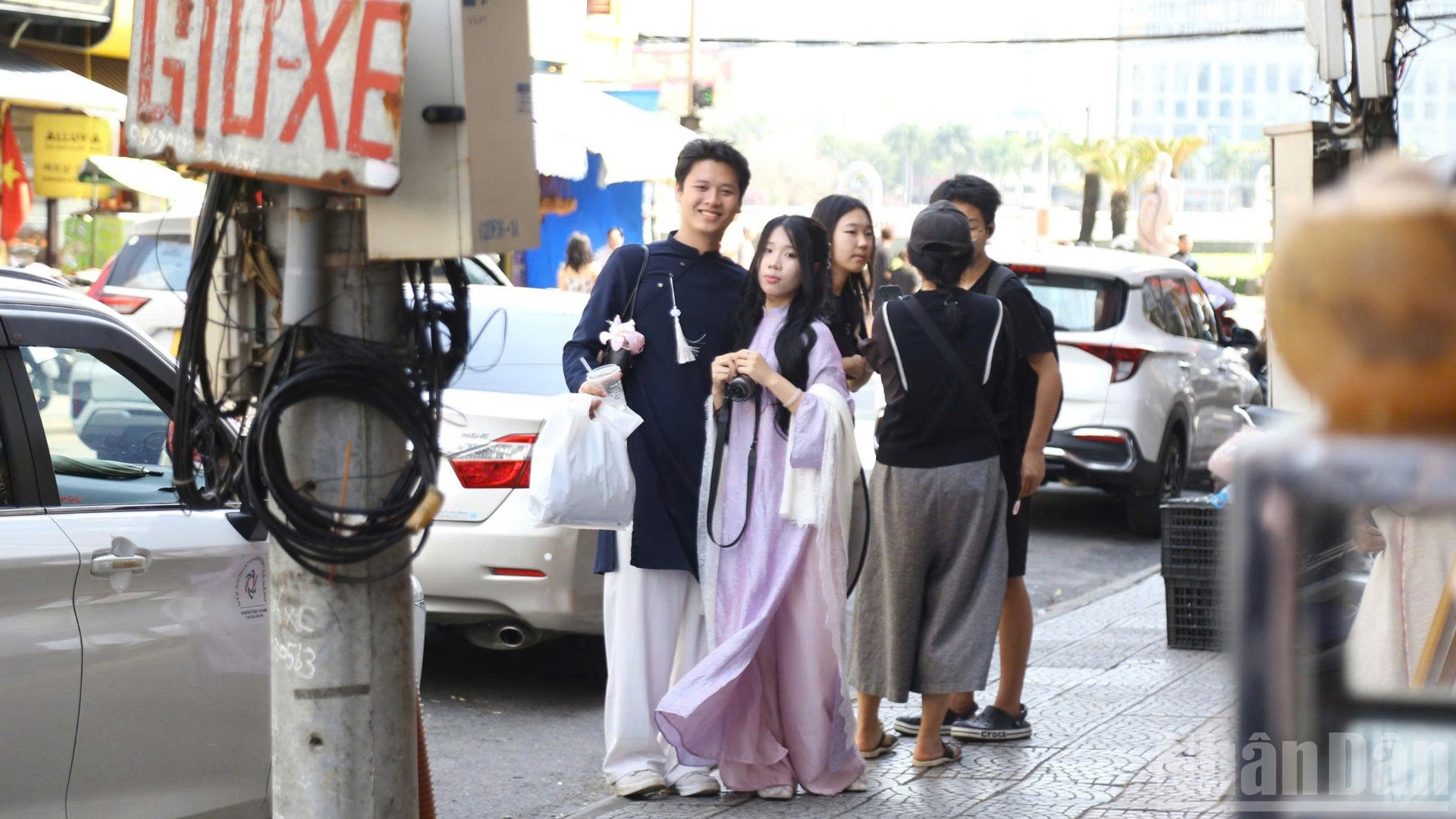 Hình ảnh các bạn trẻ trong tà áo dài như những nét đặc trưng điểm tô cho không gian Đà Nẵng thêm phần rạng rỡ trước thềm Tết Nguyên đán Bính Ngọ năm 2026.