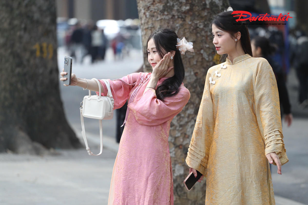 Nhiều du khách trong và ngoài nước tỏ ra thích thú trước hình ảnh giới trẻ Việt Nam diện áo dài, tự tin tạo dáng giữa không gian cổ kính, xanh mát của Thủ đô. Không ít người đã dừng lại chụp ảnh, ghi hình như một kỷ niệm đáng nhớ trong chuyến du xuân Hà Nội.