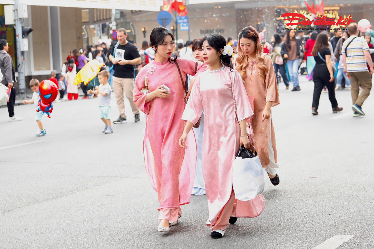 Nhiều bạn nữ xúng xính áo dài, tranh thủ ghi lại bộ ảnh kỷ niệm ngày đầu năm 2026.
