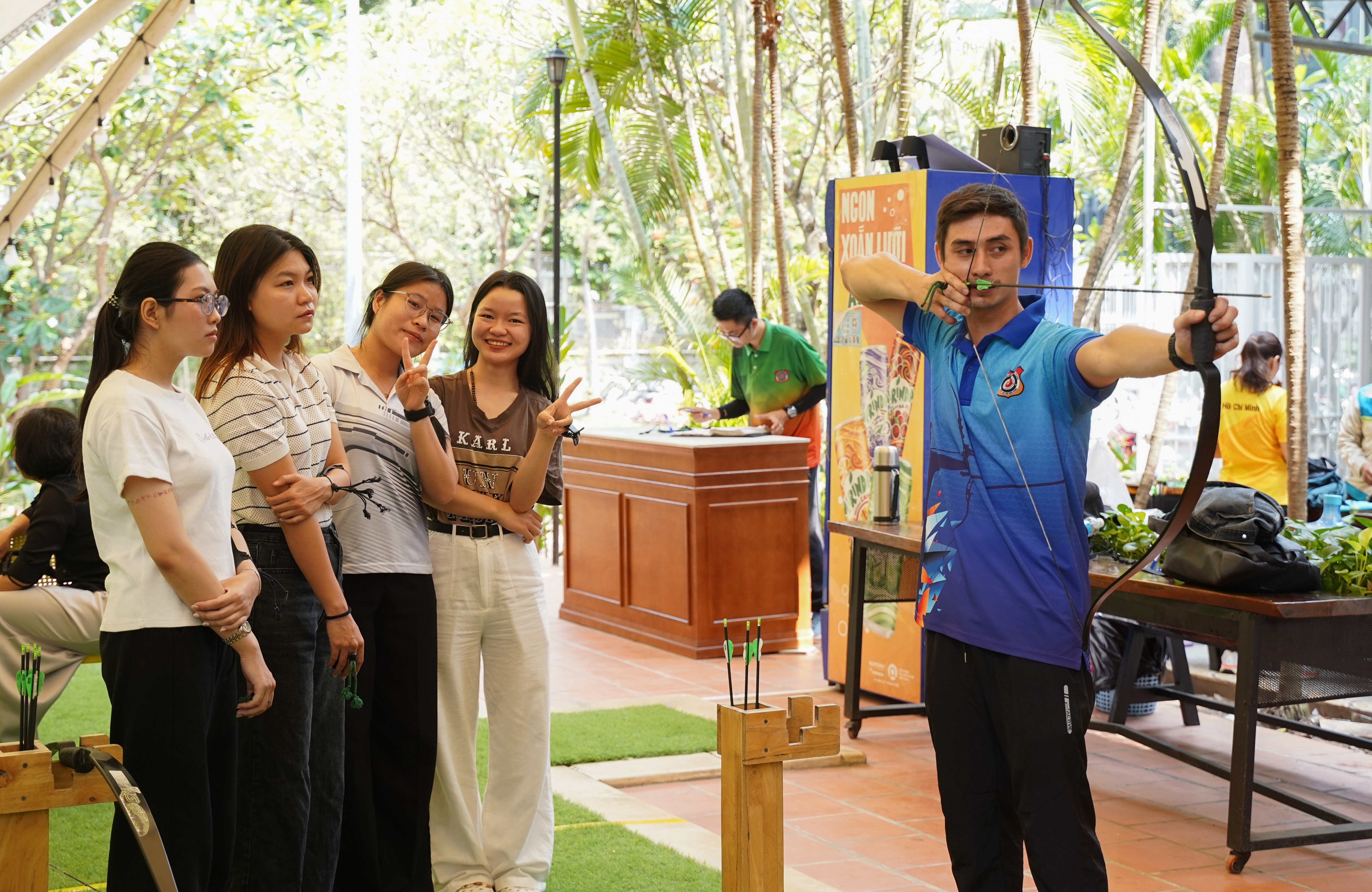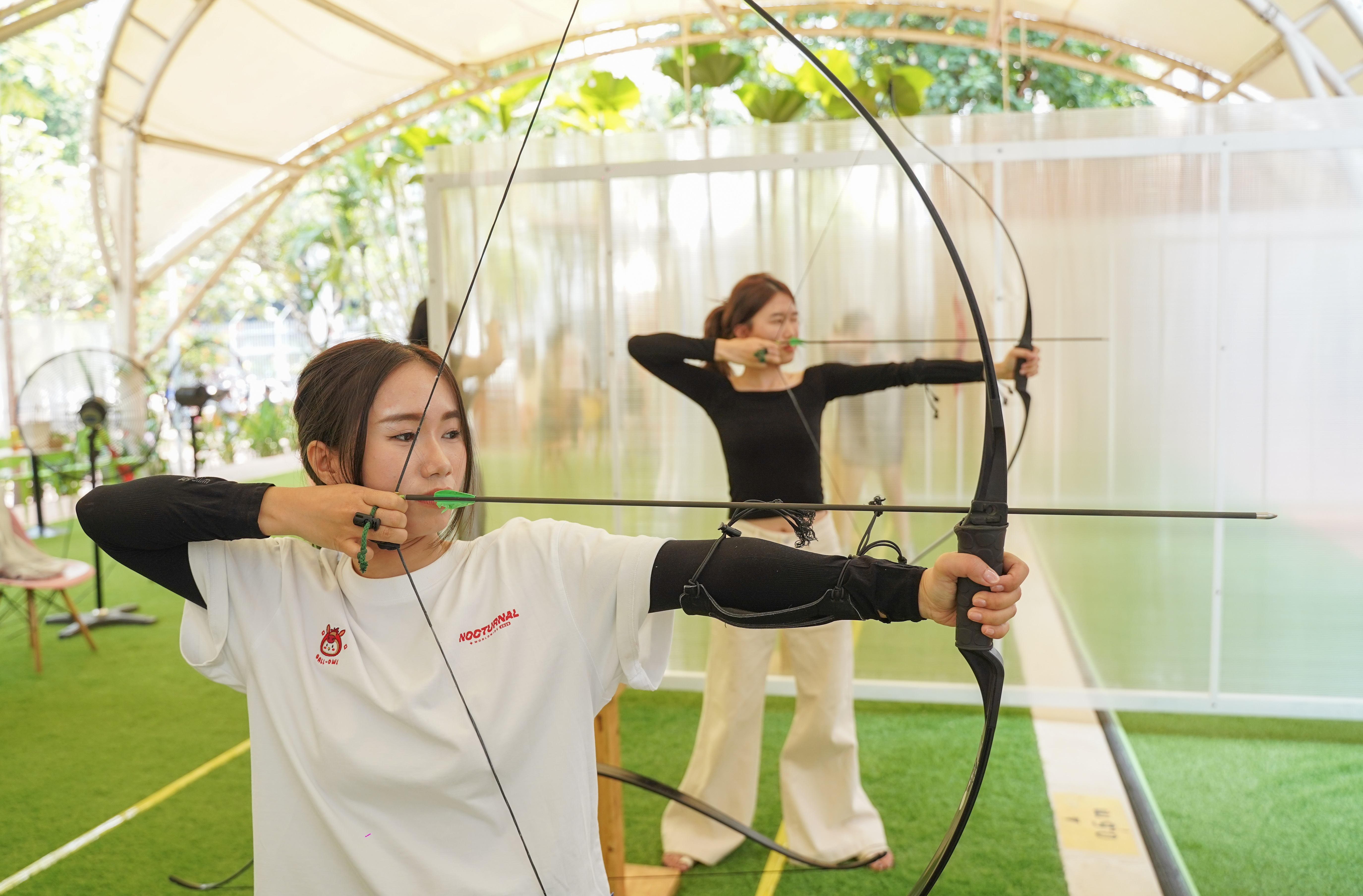 Chị Bạch Như (phường Tân Sơn) thích thú khi lần đầu tiên nhập môn bắn cung. "Nơi này cách trụ sở cũ chưa đến 1 km nên vấn đề di chuyển của mọi người gần như không bị ảnh hưởng. Mình đến đây với bạn để thử bộ môn bắn cung và trải nghiệm rất vui, thoải mái".