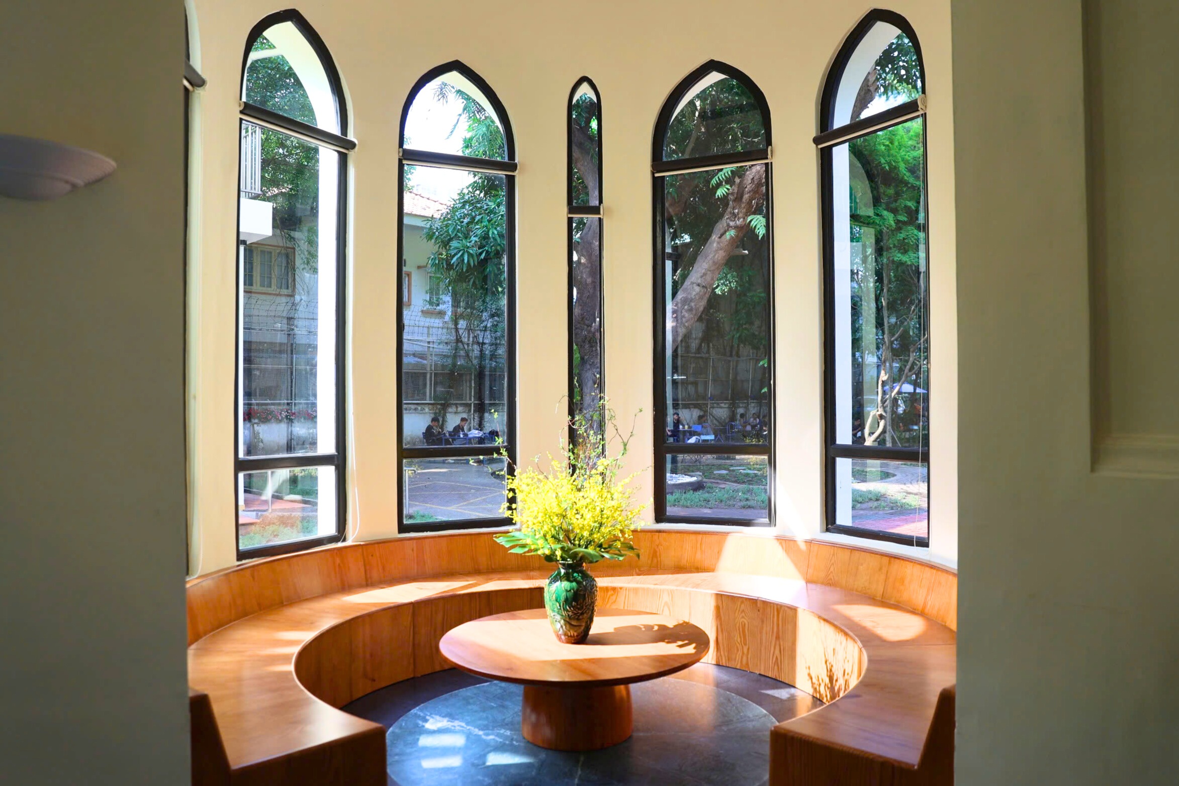 Nơi đây được biết đến với vẻ đẹp độc đáo của công trình mang phong cách kiến trúc cổ điển châu Âu. Những tháp tròn ở góc nhà, ô cửa nhỏ và ban công lan can kiểu cổ tạo nên diện mạo như một “lâu đài thu nhỏ”. Khuôn viên rộng hơn 5.000m2 đã trở thành "trạm dừng chân" mà nhiều người lựa chọn nhâm nhi cà phê, tận hưởng không gian xanh giữa trung tâm thành phố.