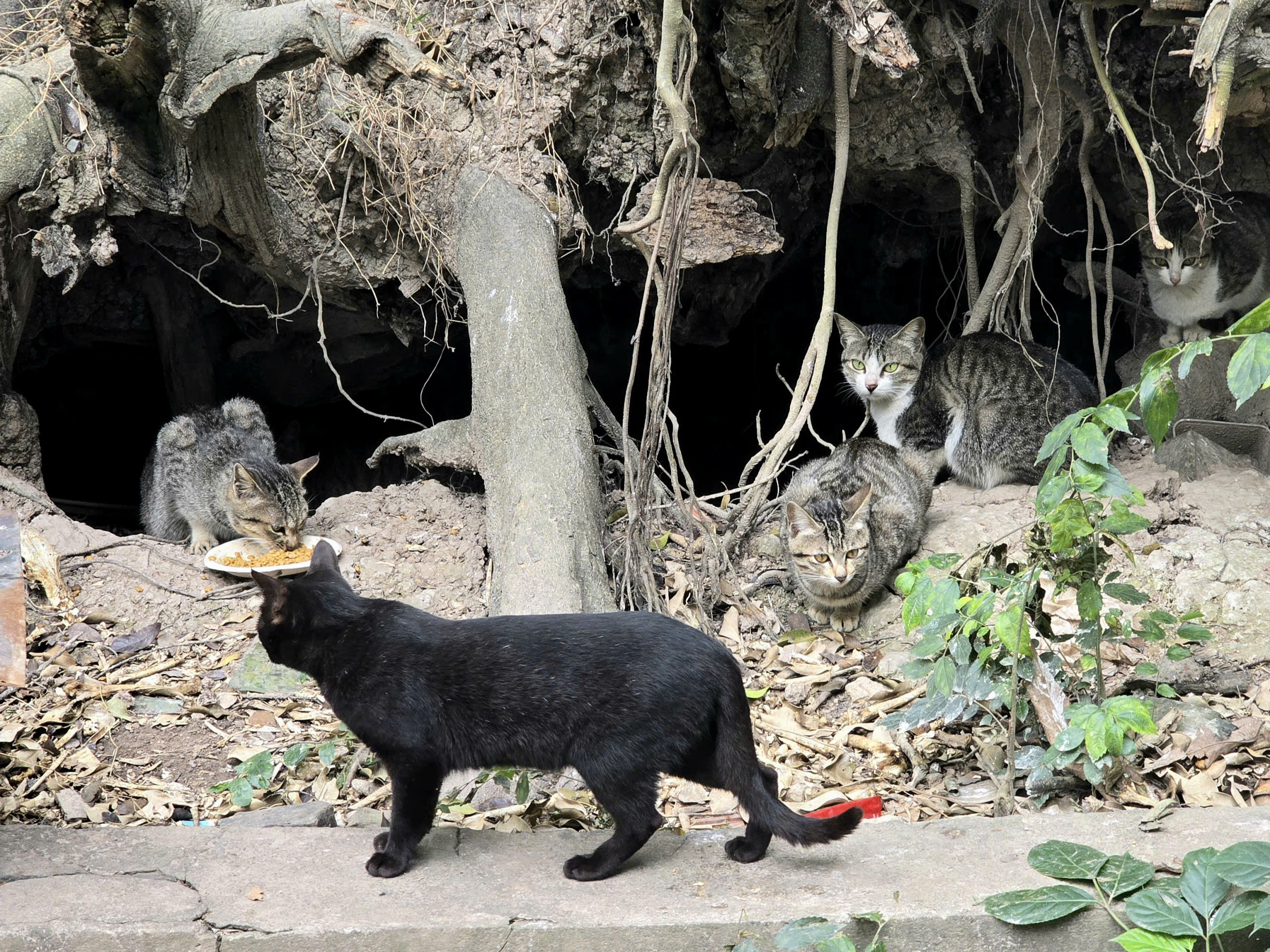Theo người trông nom, hiện đảo có gần 40 con mèo cùng hai con chó. Một gốc cây cổ thụ bị đổ trở thành nơi trú ngụ quen thuộc của đàn mèo, tạo nên khung cảnh tự nhiên, hoang sơ giữa lòng đô thị.