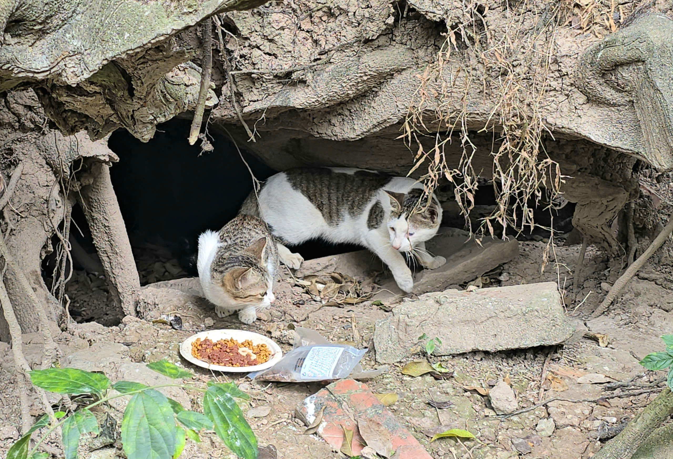 Ngoài thức ăn khô, đàn mèo còn có thể tự săn cá dưới hồ, dấu vết là những mảnh xương cá rải rác quanh đảo.