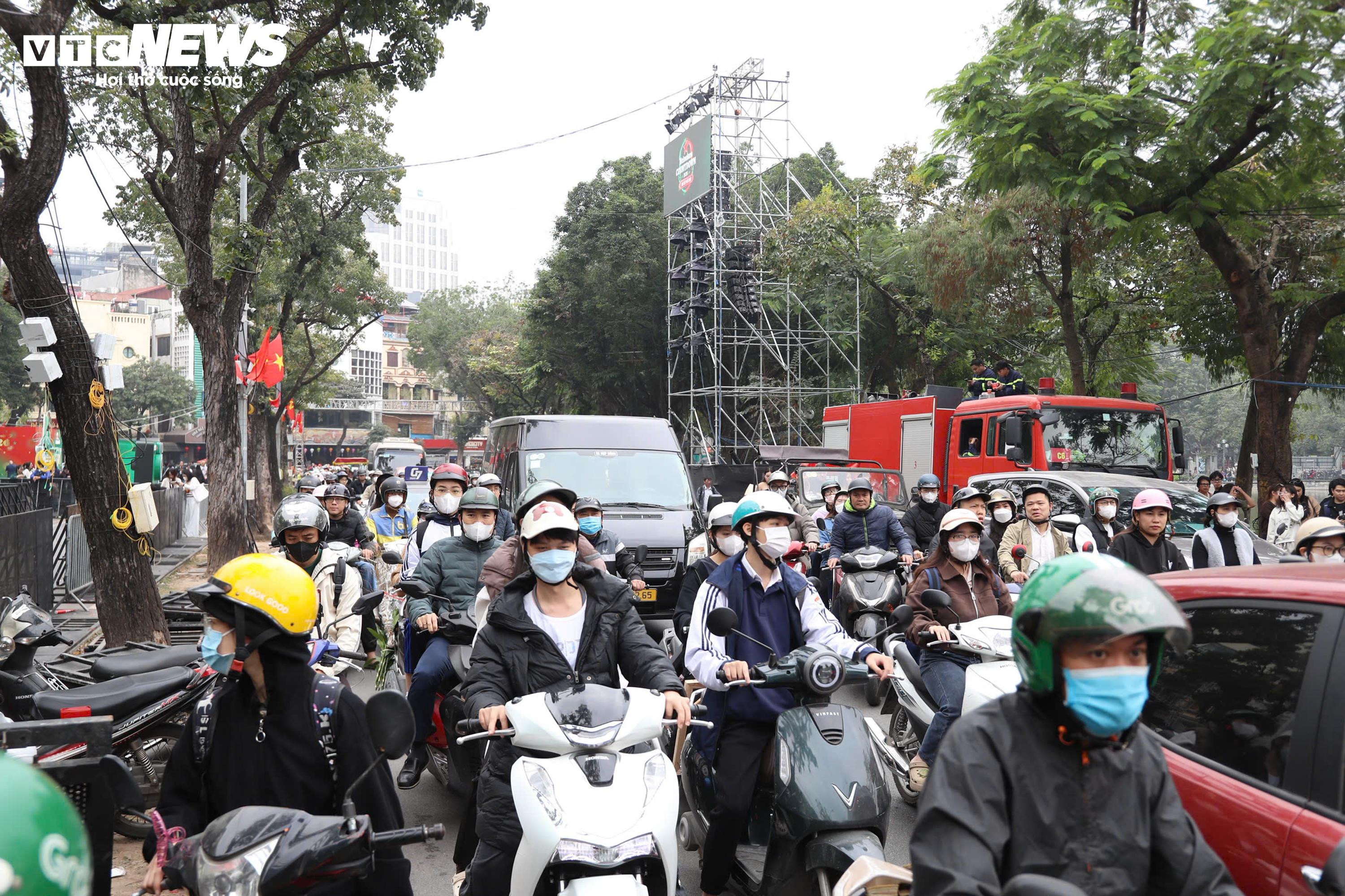 Càng về chiều, lượng người đổ về khu vực Hồ Gươm càng đông. Nhiều tuyến đường dẫn vào phố đi bộ rơi vào tình trạng ùn ứ, các phương tiện di chuyển chậm. Lực lượng chức năng được huy động để phân luồng, hướng dẫn giao thông, hạn chế tình trạng ùn tắc kéo dài.