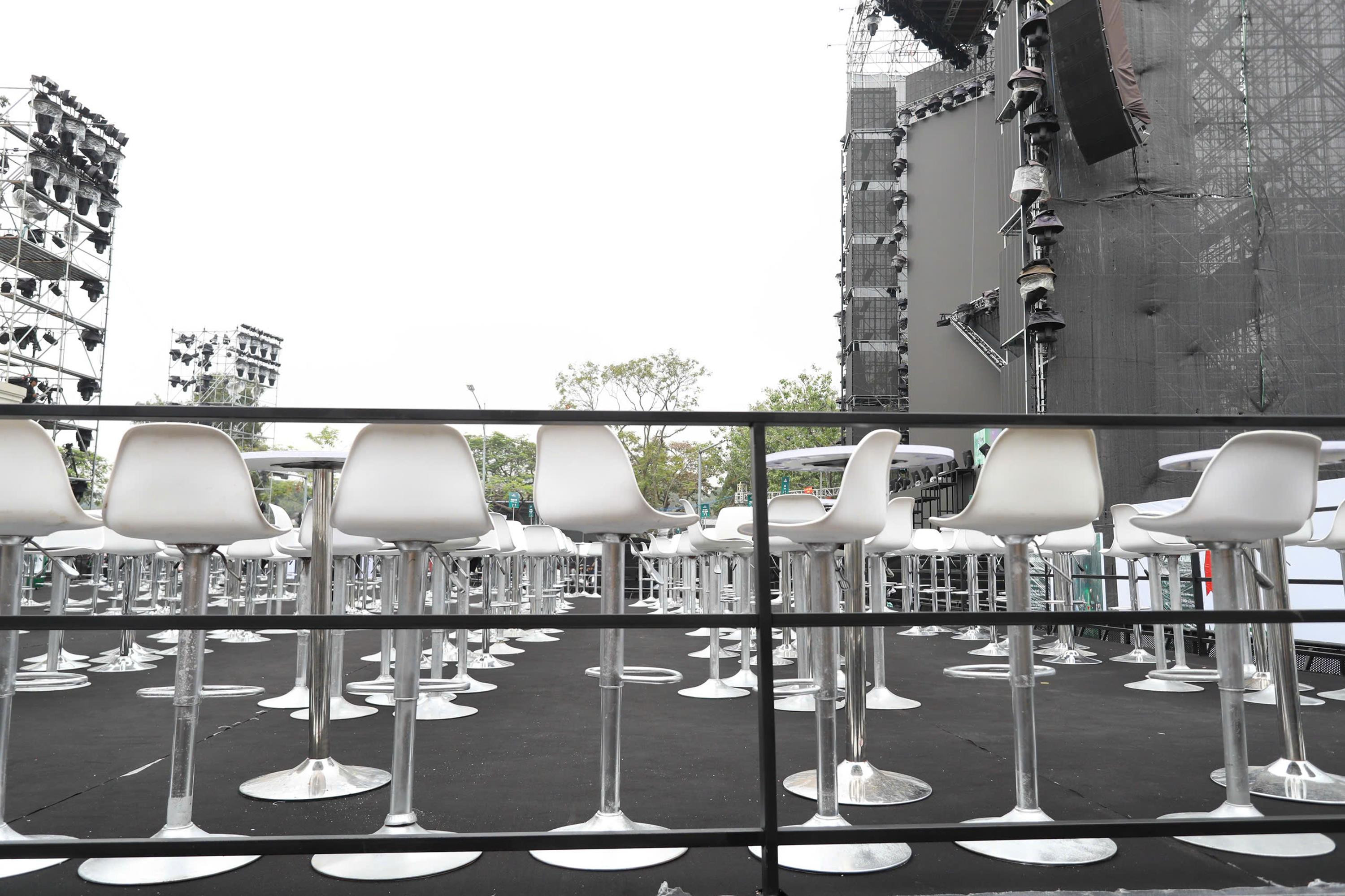 Tại Quảng trường Đông Kinh - Nghĩa Thục, công tác chuẩn bị cho đêm diễn đã hoàn tất. Sân khấu lớn được dựng từ sớm, hệ thống âm thanh, ánh sáng được kiểm tra kỹ lưỡng, sẵn sàng cho những màn trình diễn bùng nổ trong đêm cuối năm.