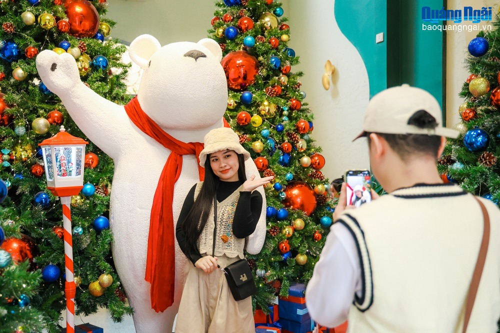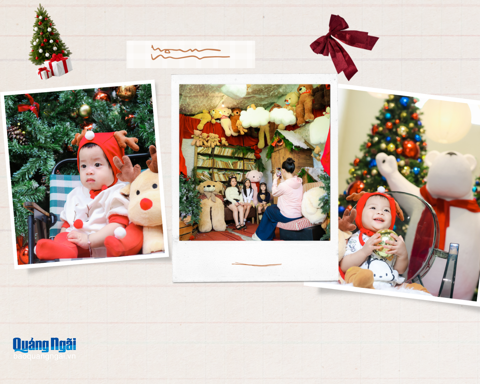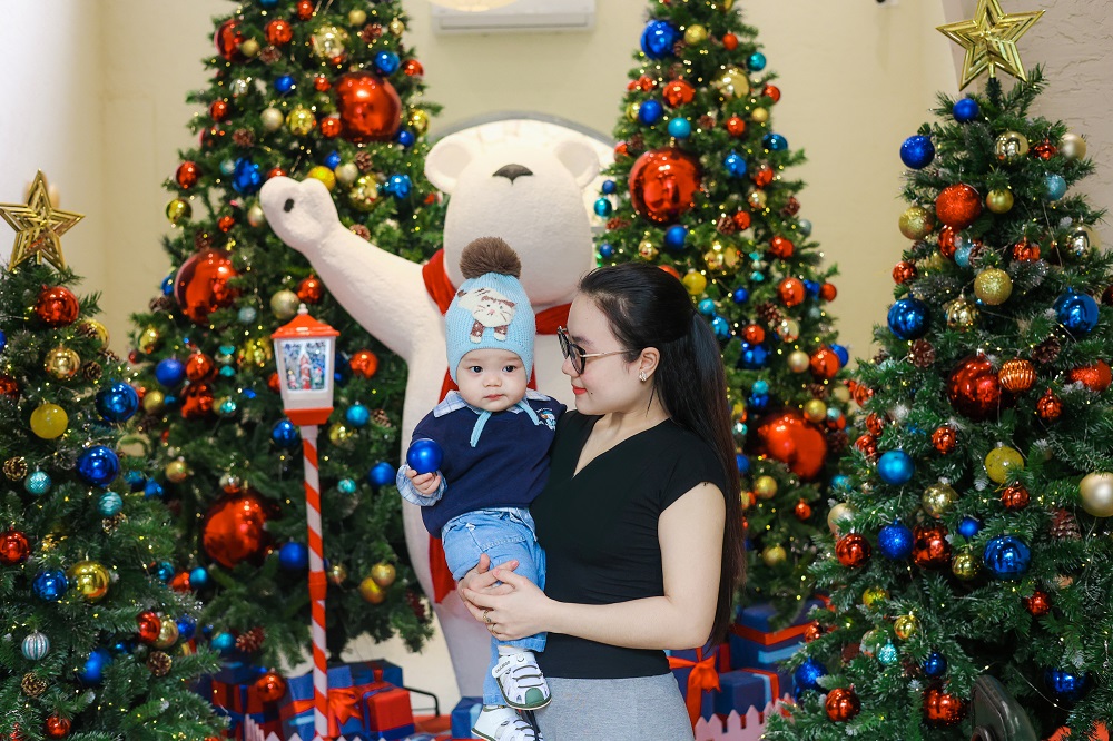 Nhiều không gian chụp ảnh được thiết kế với các tiểu cảnh Giáng sinh dễ thương, an toàn, phù hợp với trẻ em như cây thông, gấu bông, tuyết nhân tạo...