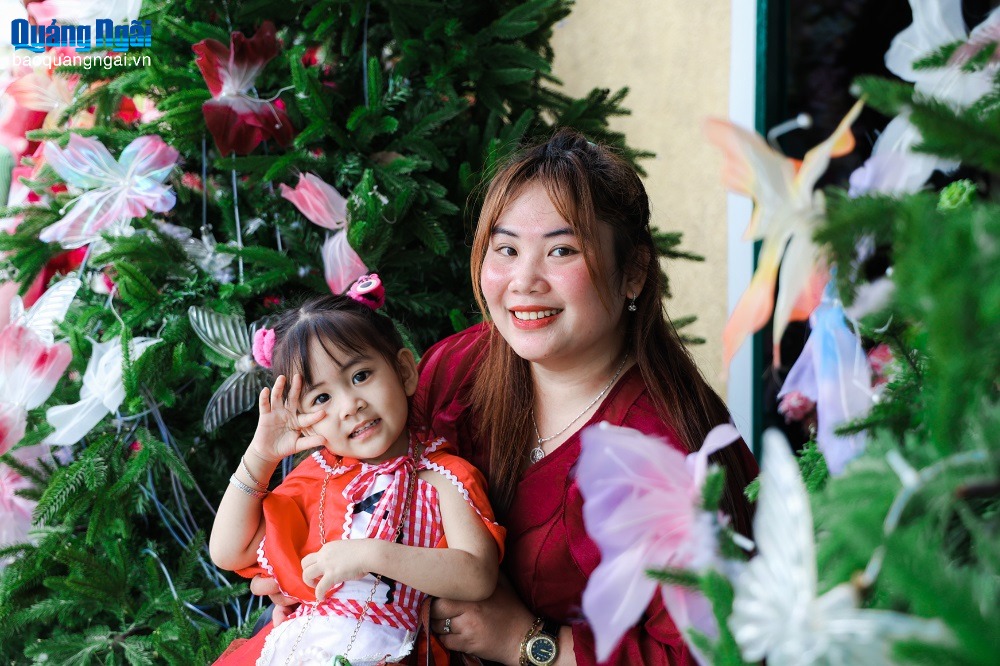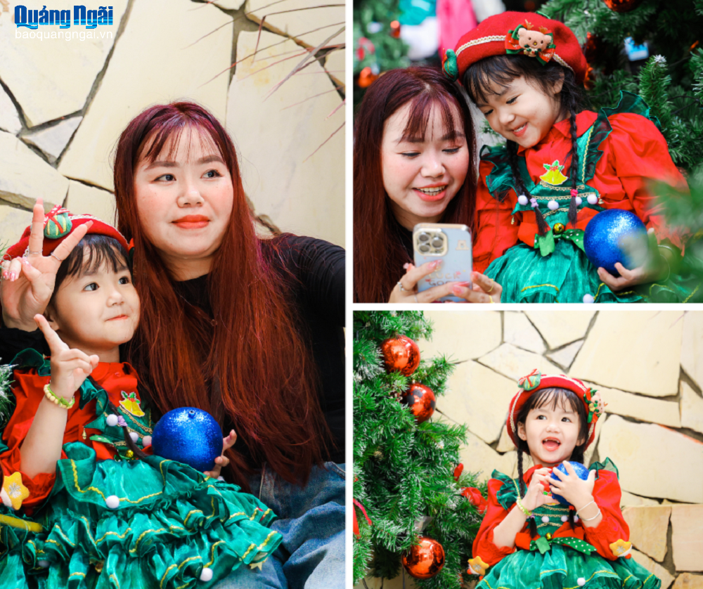 Chị Hồ Thị Thùy (27 tuổi), ở phường Trương Quang Trọng, cùng con cái háo hức check-in Giáng sinh sớm.