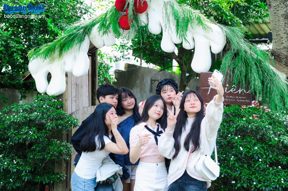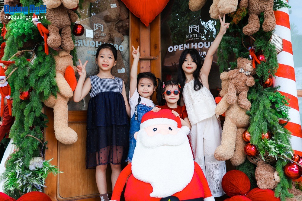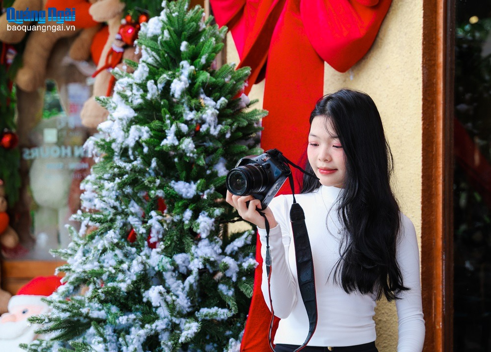 Em Lý Bùi Phương Thy (15 tuổi), ở xã Tịnh Thiện chia sẻ, năm nay các quán trang trí Giáng sinh rất sớm, chỉn chu và đẹp mắt. Việc chuẩn bị sớm như vậy khiến mình có nhiều thời gian để tận hưởng, trải nghiệm nhiều không gian khác nhau, cũng như có nhiều ảnh đẹp hơn.