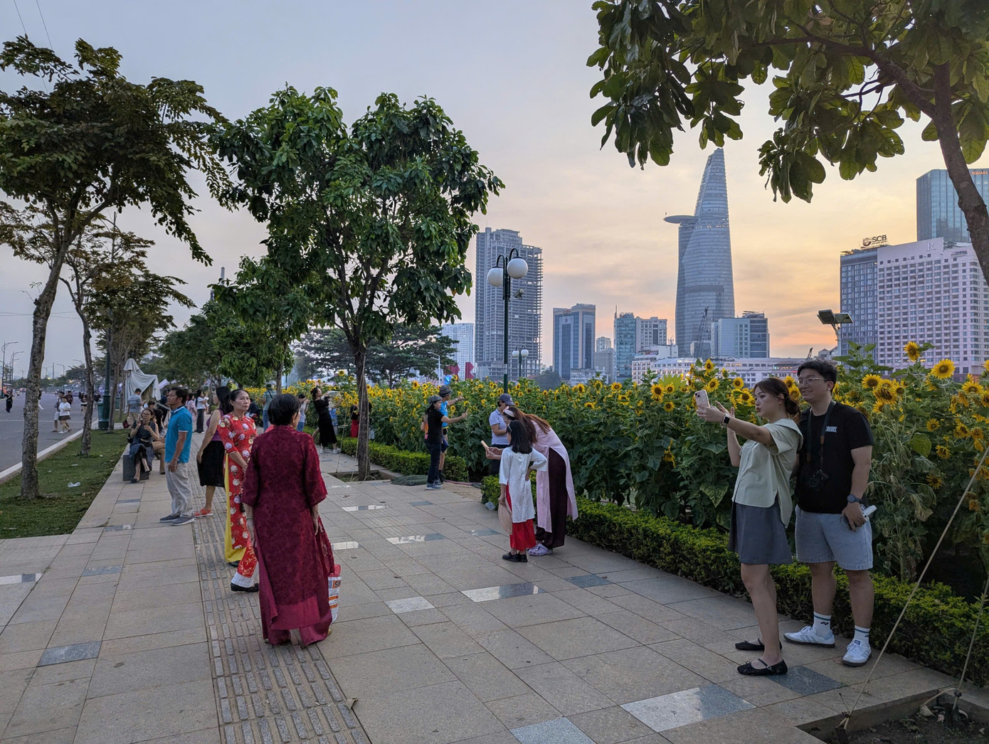 Những ngày đầu năm 2026 rất đông bạn trẻ đến Công viên bờ sông Sài Gòn để check-in cùng hoa hướng dương.