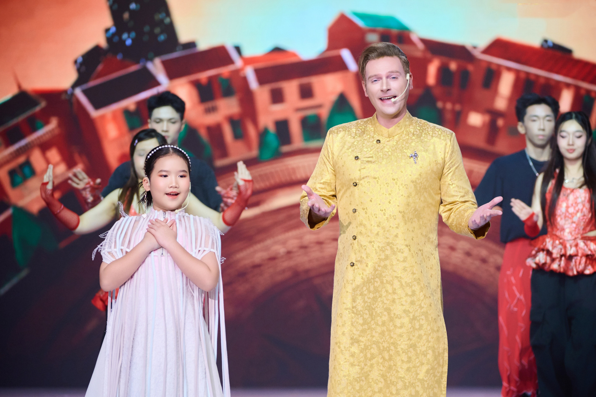 Trong tiết mục, Gabi Bảo Uyên thể hiện phần hát với giọng ca trong trẻo, giữ vai trò kết nối tinh thần thiếu nhi với thông điệp yêu quê hương.