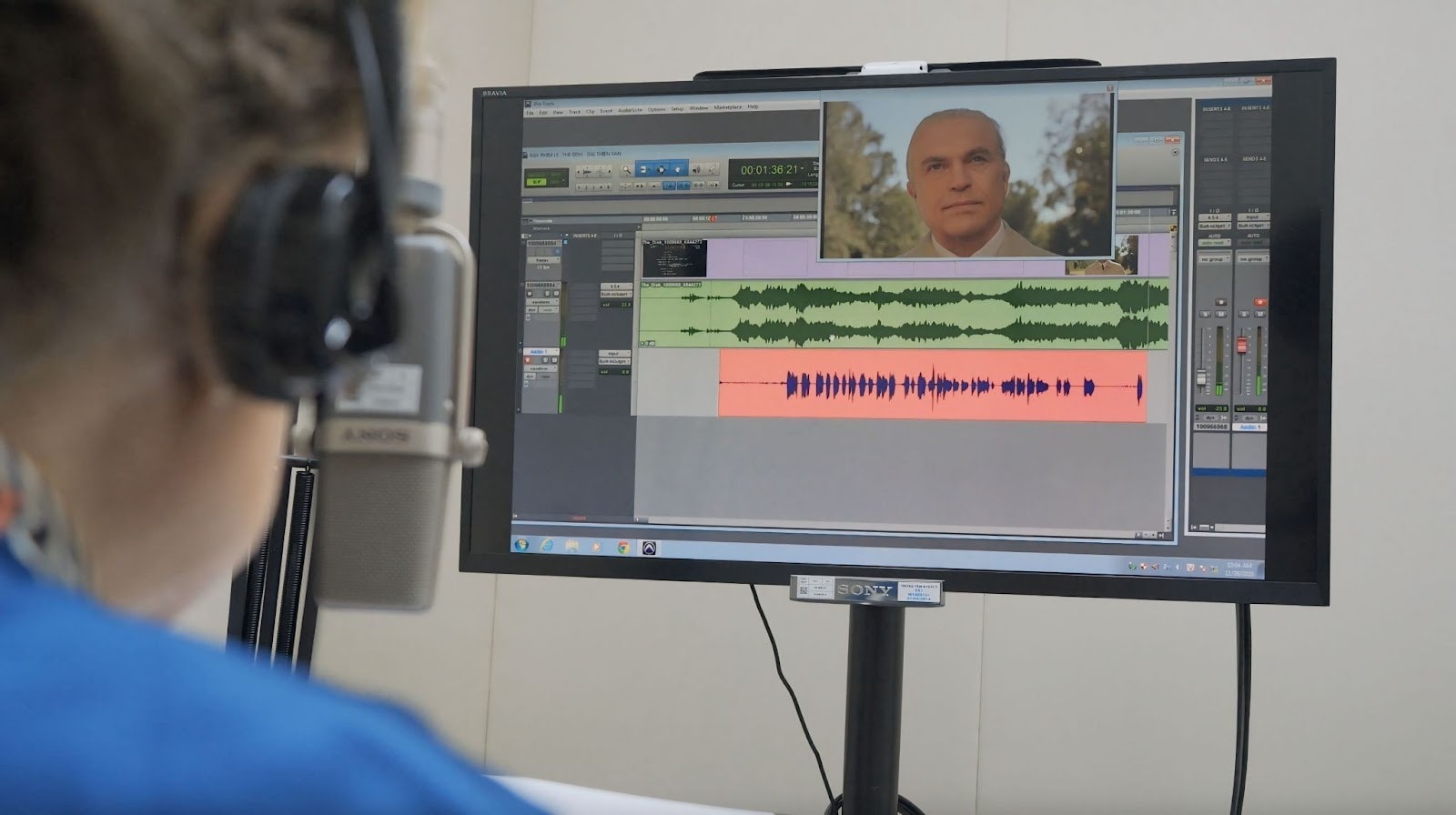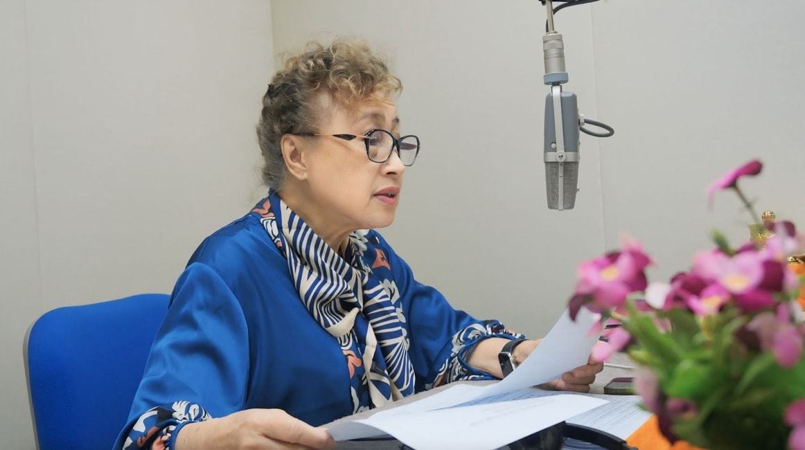 NSƯT Kim Tiến thuyết minh cho phim "Đài Thiên văn". Ảnh: VTV