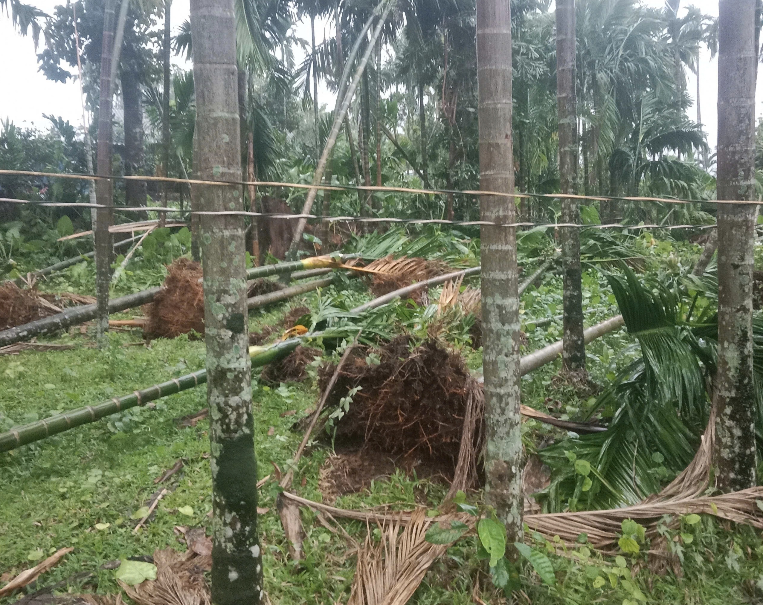 Cây cối, hoa màu bị gió quật ngã.