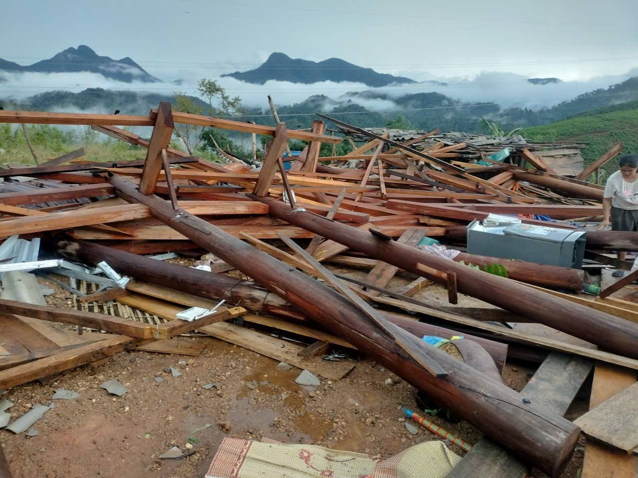 Gió lốc đã làm sập 2 căn nhà dân ở bản tái định cư Pù Xai Cáng, bản Mường Piệt