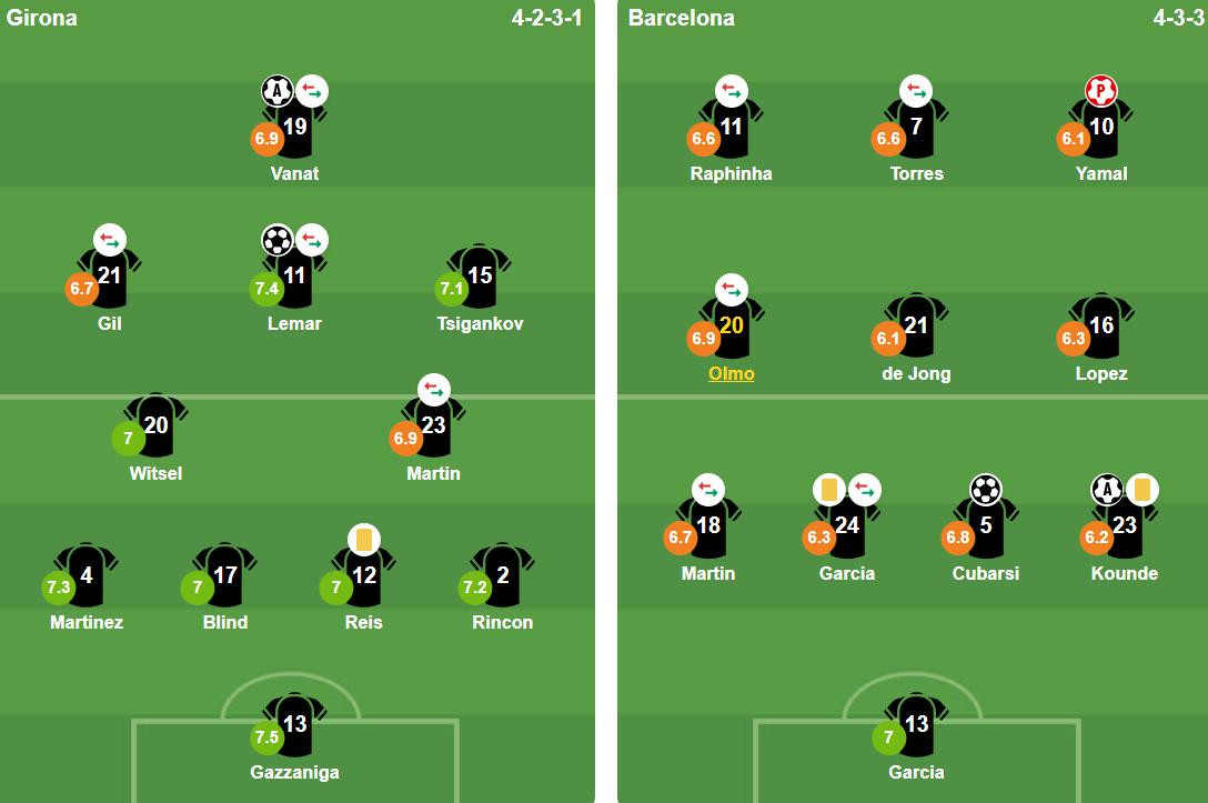 Kịch tính được đẩy lên đỉnh điểm ở phút bù giờ thứ năm khi Robert Lewandowski đưa được bóng vào lưới Girona. Tuy nhiên, sau khi tham khảo VAR, trọng tài đã từ chối bàn thắng do lỗi việt vị. Trận đấu kết thúc trong căng thẳng với chiếc thẻ đỏ trực tiếp dành cho Joel Roca bên phía đội chủ nhà sau pha vào bóng thô bạo ở phút 90+9.