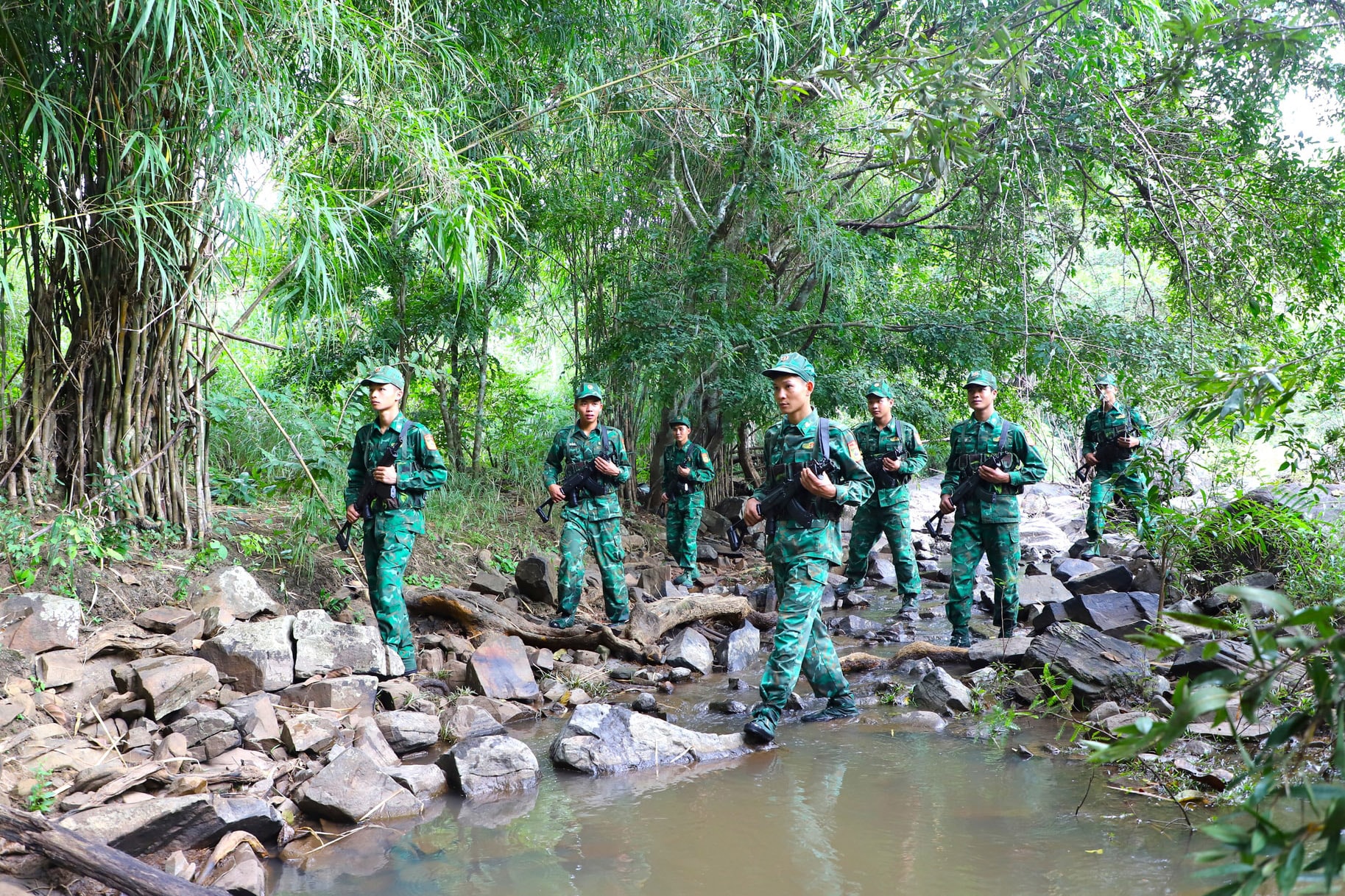 Cán bộ, chiến sĩ BĐBP tổ chức tuần tra dọc biên giới, kiểm soát chặt chẽ đường biên, cột mốc