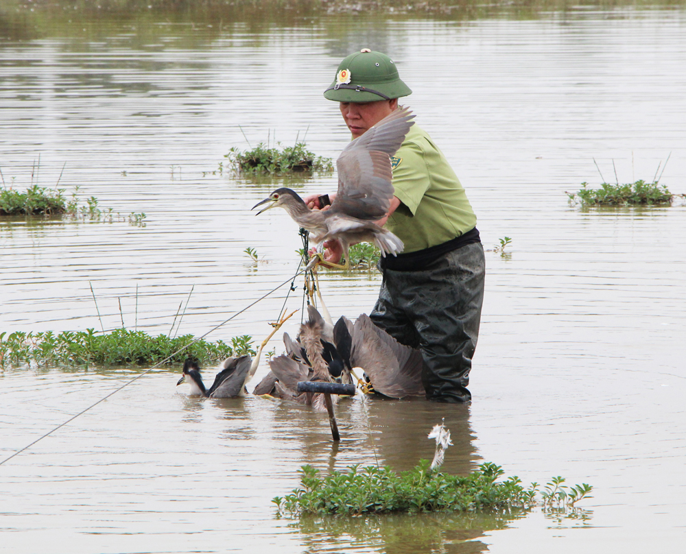 Xác định đây là một trong những điểm bẫy chim trái phép, sau khi khảo sát tình hình, đoàn công tác liên ngành gồm Chi cục Kiểm lâm (Sở Nông nghiệp và Môi trường), Phòng Cảnh sát Điều tra tội phạm về tham nhũng, kinh tế, buôn lậu (Công an tỉnh) đã tiến hành xử lý. Một cán bộ kiểm lâm xắn quần lội ruộng, tỉ mỉ gỡ từng nút dây để cứu những chú chim tội nghiệp. Đôi chân cò hằn vết trói, cả thân hình run rẩy sau thời gian dài bị giam cầm. Sau khi được thả, những chú cò xám không bay đi ngay, chúng lượn vài vòng trên cao rồi mới tung cánh trở về trong vòng tay bao bọc của mẹ thiên nhiên.