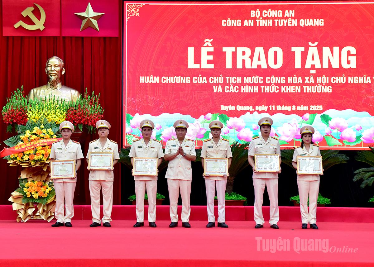 Thiếu tướng Nguyễn Đức Thuận, Ủy viên BTV Tỉnh ủy, Giám đốc Công an tỉnh Tuyên Quang thừa ủy quyền của Bộ trưởng Công an trao Bằng khen cho các cá nhân, tập thể có thành tích xuất sắc trong công tác.