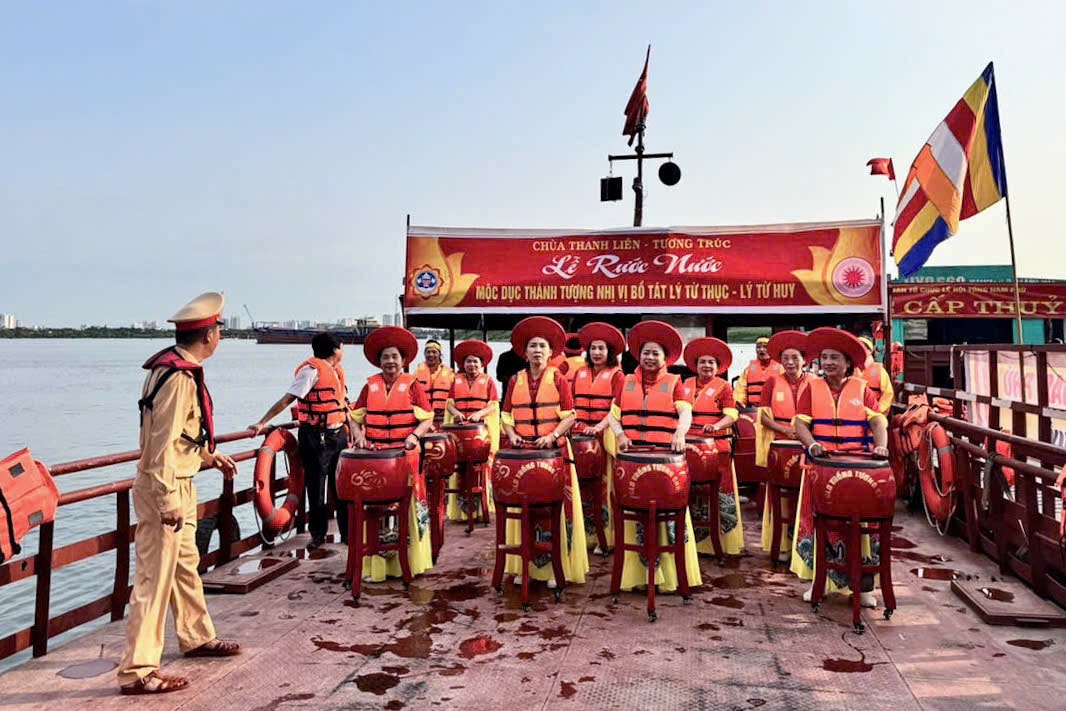 Đội đã bố trí cán bộ, chiến sĩ thường trực trên tuyến, hướng dẫn các phương tiện tham gia nghi lễ di chuyển đúng luồng tuyến, giữ khoảng cách an toàn; đồng thời sẵn sàng xử lý các tình huống phát sinh, không để xảy ra ùn ứ, va chạm trên sông.