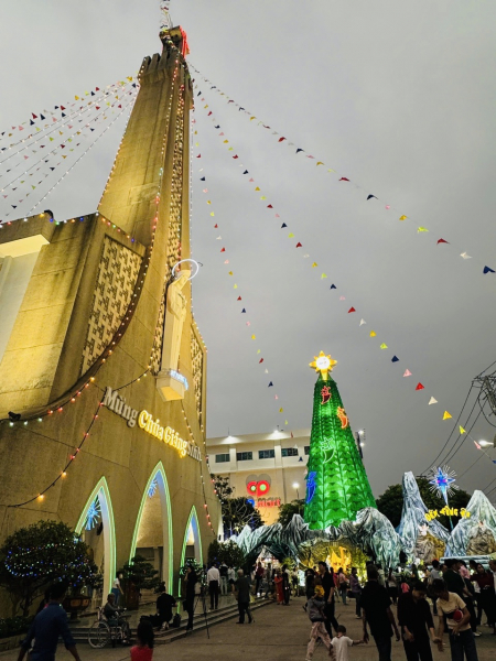 Chưa hết, không khí Giáng sinh cũng lan tỏa từ khuôn viên nhà thờ ra các tuyến đường xung quanh. Cây thông Noel lớn, hang đá truyền thống cùng hệ thống đèn trang trí tạo điểm nhấn sinh động, thu hút người dân và giới trẻ đến tham quan, chụp ảnh, sinh hoạt trong không khí trật tự, nền nếp. Hình ảnh tượng Đức Mẹ Hòa Bình với vòng tay rộng mở như một biểu tượng của sự chào đón, bao dung, góp phần làm cho Nhà thờ Chánh tòa Long Xuyên trở thành không gian sinh hoạt văn hóa – tôn giáo gần gũi với cộng đồng.