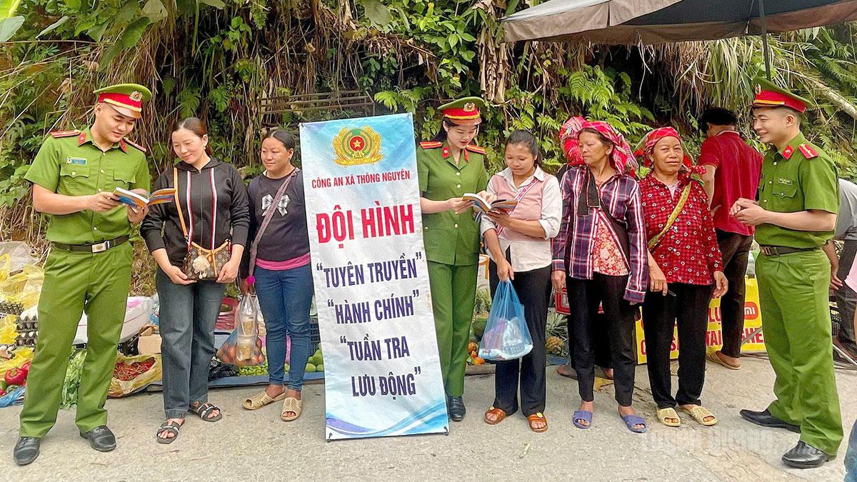 Công an xã Thông Nguyên tuyên truyền pháp luật cho người dân.
