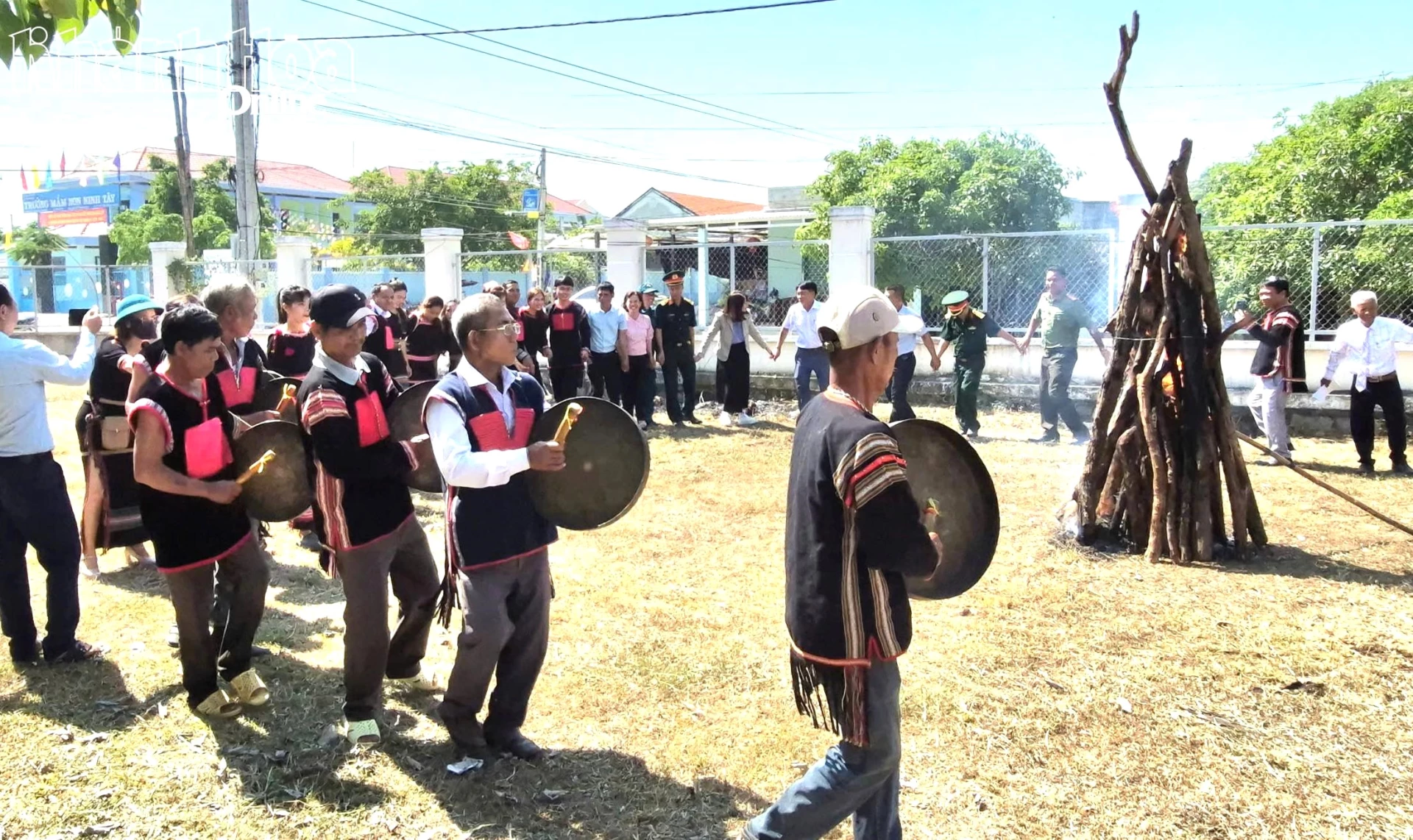 Cán bộ, người dân xã Tây Ninh Hòa tham gia ngày hội cúng bến nước với đồng bào Ê đê.