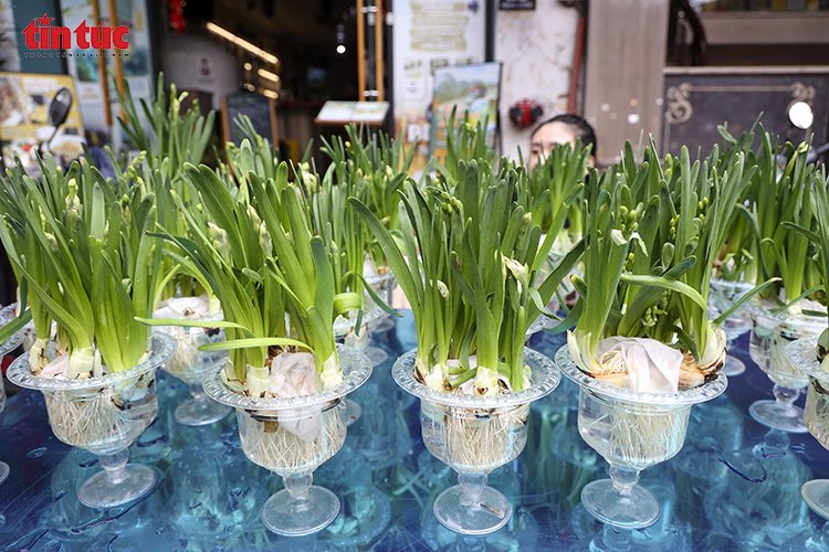 Thủy tiên được gọt tỉa công phu bày bán tại chợ, thu hút người yêu thú chơi hoa truyền thống.
