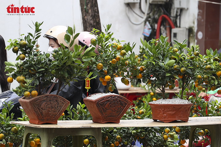 Những chậu quất cảnh sai trĩu quả được bày bán, mang ý nghĩa sung túc, đủ đầy ngày Tết.
