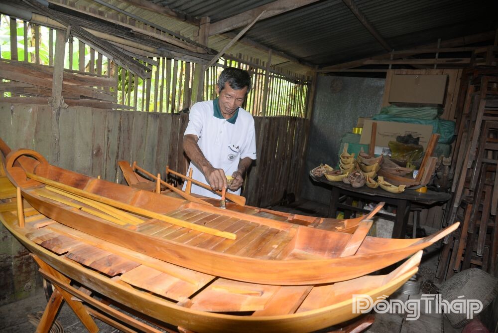 Ông Nguyễn Văn Tốt được xem là nghệ nhân tại làng nghề, tiên phong làm xuồng, ghe mini, những phiên bản thu nhỏ nhưng giữ nguyên kiểu dáng truyền thống.