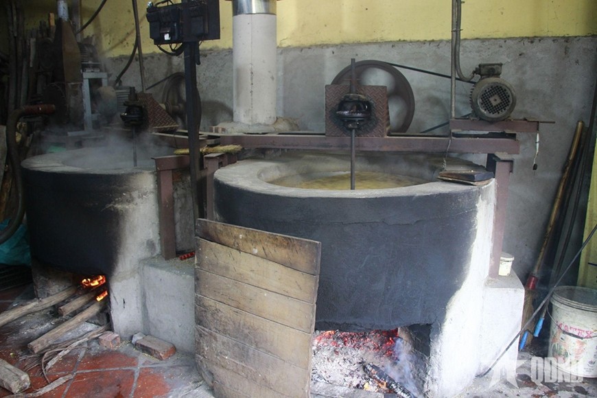 Thóc sau khi đãi sạch sẽ cho vào chảo rang. Quan trọng nhất là hạt thóc phải được rang sao cho đạt độ dẻo, dai. Người thợ luôn phải canh lửa thật khéo, giữ nhiệt đều để thóc chín tới, không bị sống hay vỡ nát.