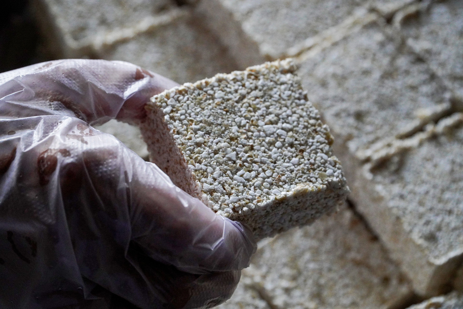 Công thức vẫn vậy: 1 nếp, 1 đường, thêm chút gừng sẻ. Trộn thật đều tay, đưa vào khuôn, nén chặt rồi hong khô trên than củi. Chiếc bánh cứng hay mềm, kết dính vừa đủ hay không, tất cả nằm ở tay nghề nấu đường.