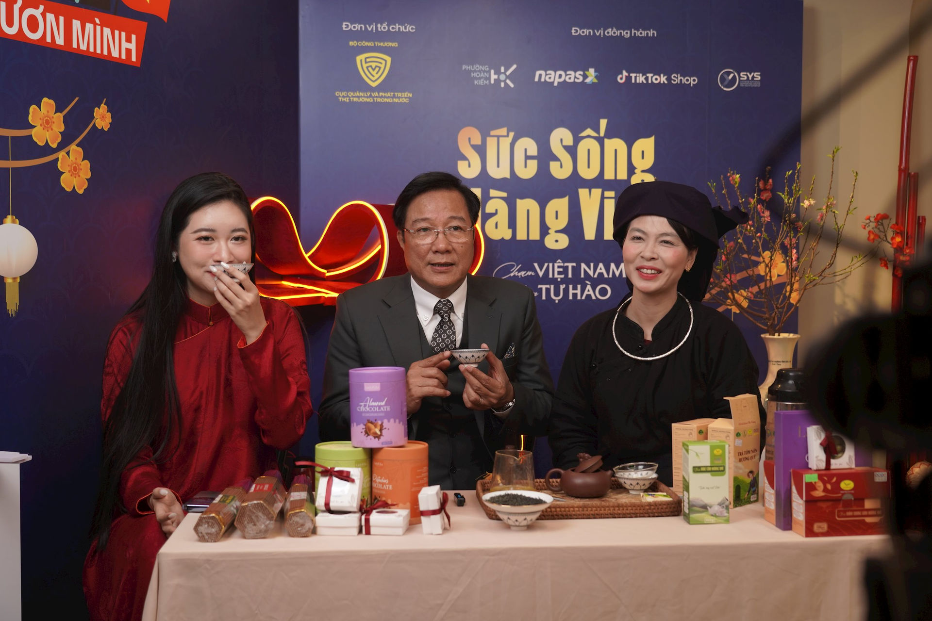 Cục trưởng Cục Quản lý và Phát triển thị trường trong nước Trần Hữu Linh đồng hành cùng NSND Trọng Trinh trong phiên livestream “Sức sống hàng Việt” diễn ra sáng 06/02/2026 tại 62 Tràng Tiền - Hà Nội. Cục trưởng Trần Hữu Linh cho biết: Sức sống hàng Việt là một trong những nhiệm vụ trọng tâm nhằm thúc đẩy, quảng bá sản phẩm sản xuất trong nước và đưa hàng Việt đến gần hơn với người tiêu dùng.