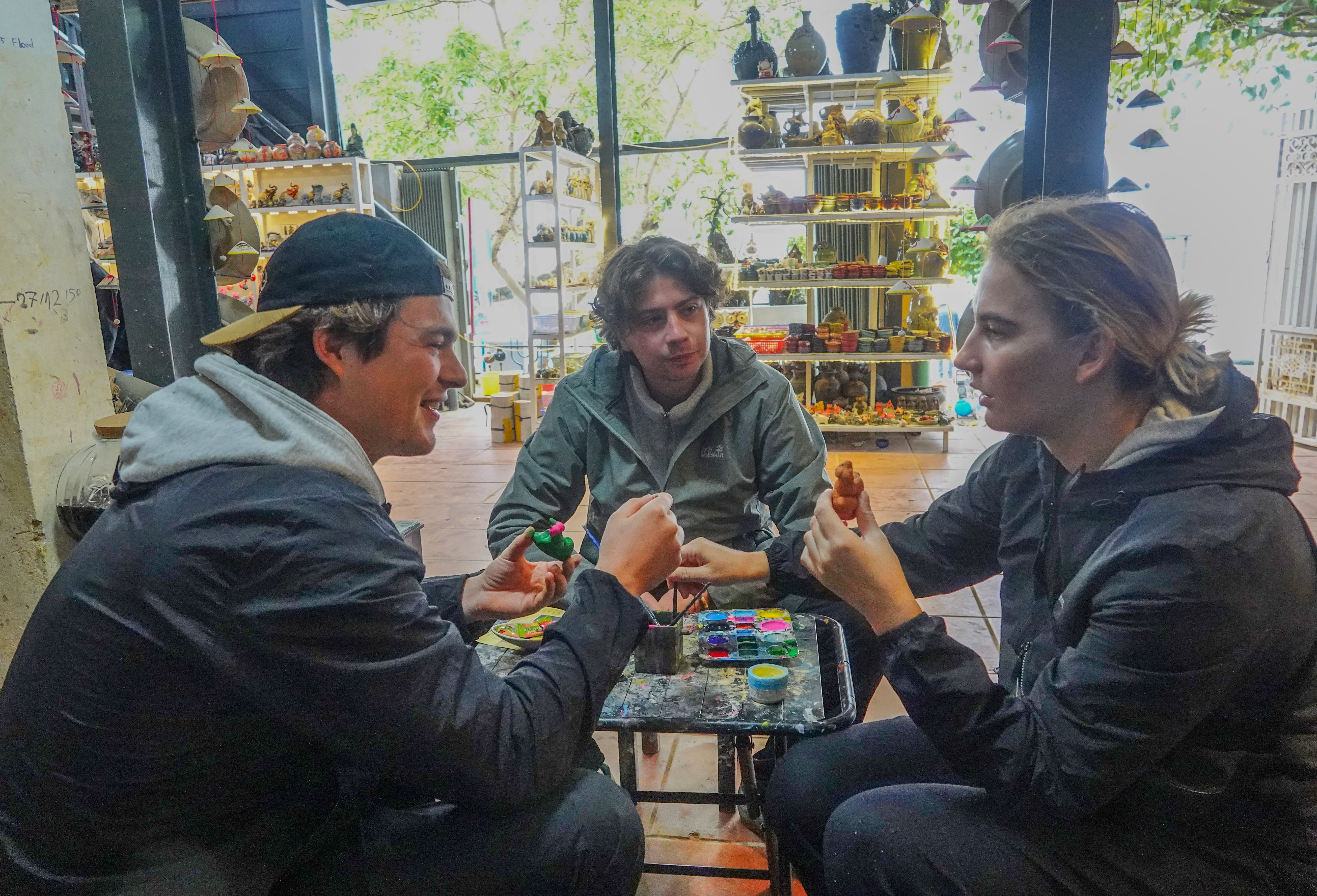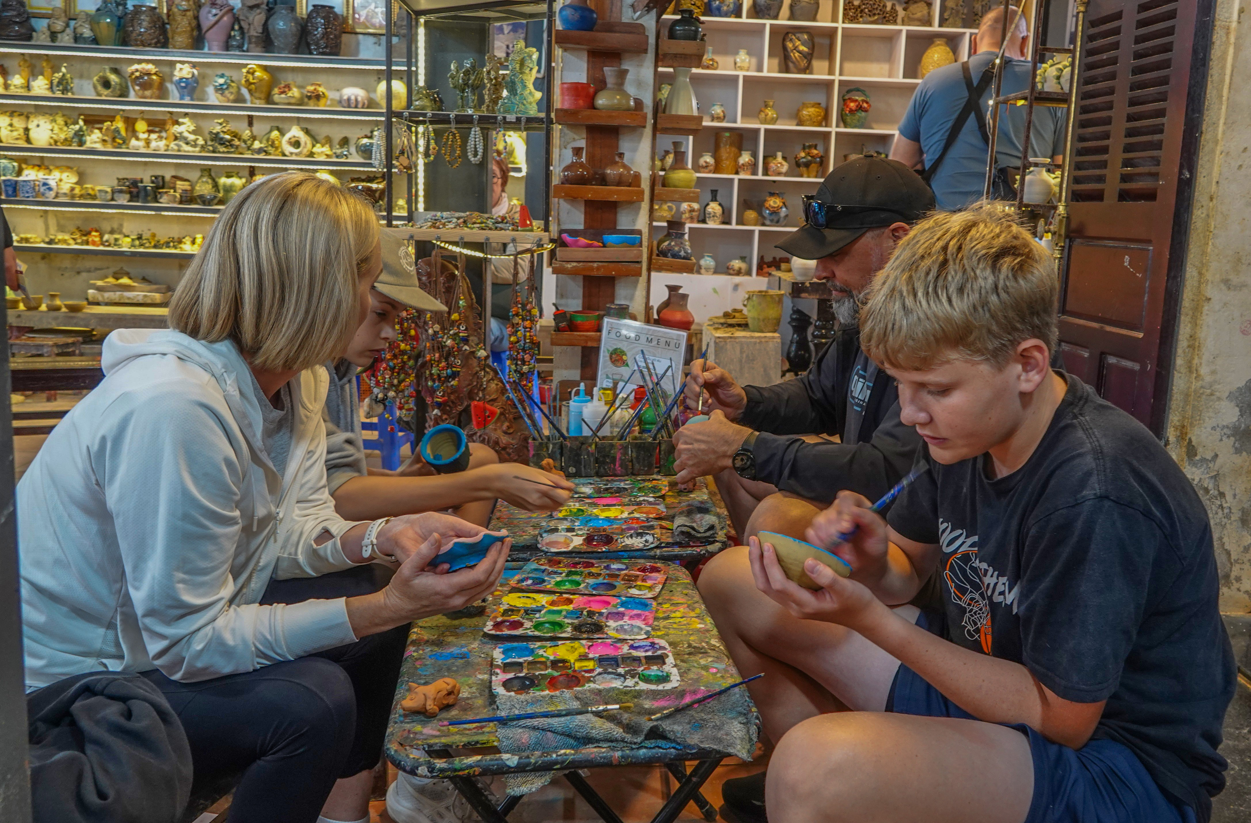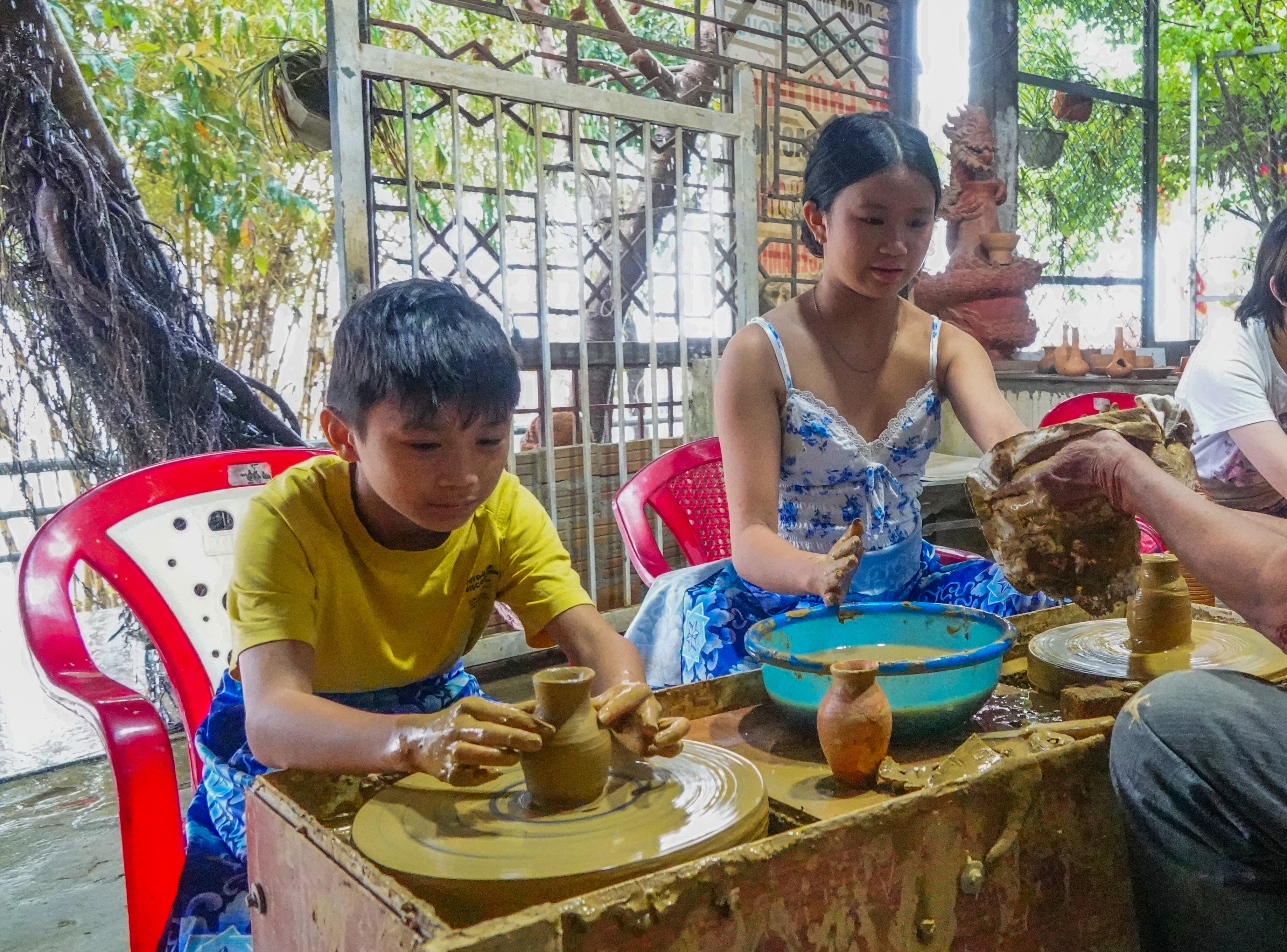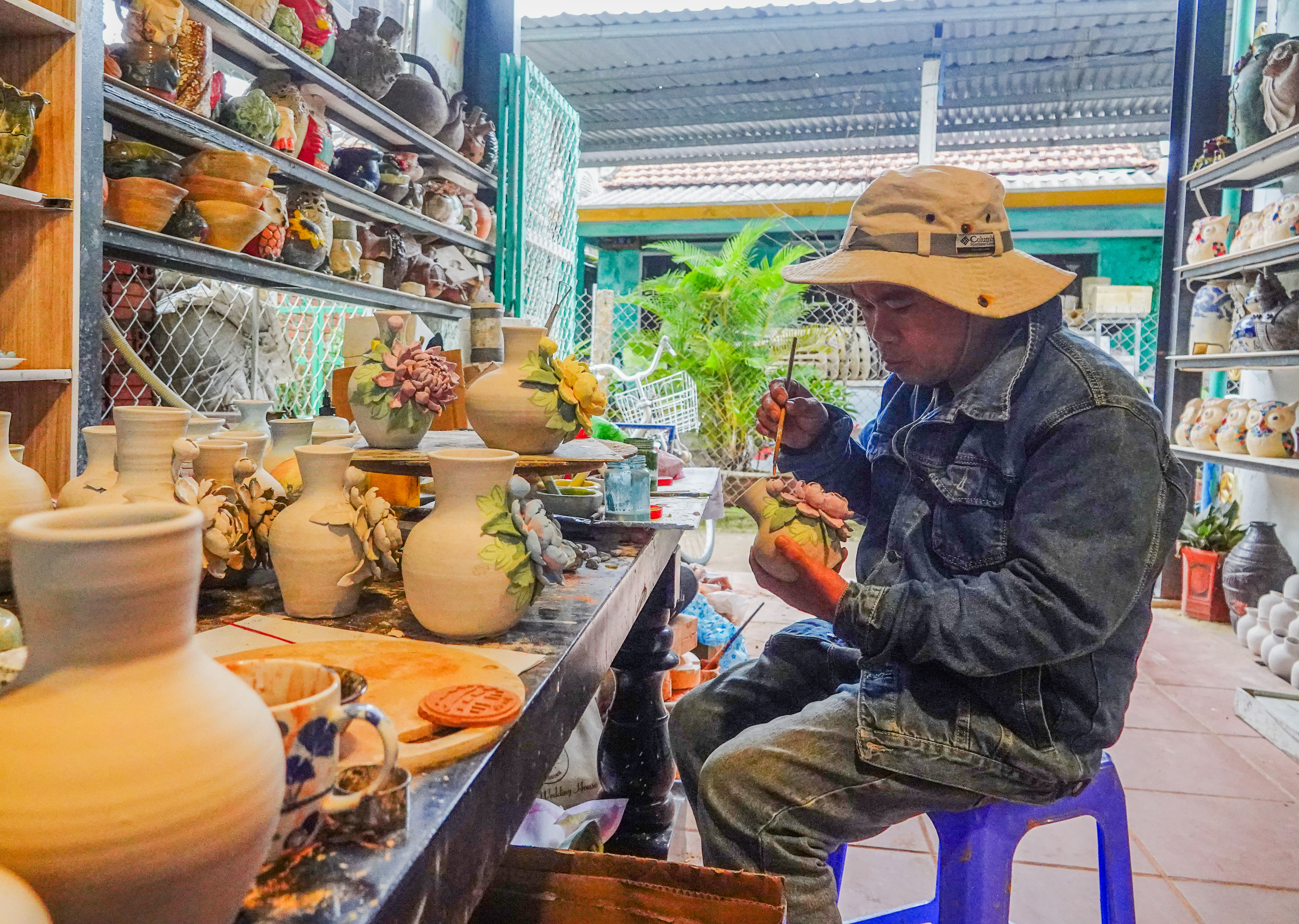 Không chỉ dừng lại ở việc tham quan, nhiều du khách còn chọn ngồi lại để tự tay thử làm gốm, tô màu sản phẩm. Trải nghiệm trực tiếp giúp du khách hiểu hơn sự tỉ mỉ, công phu của nghề thủ công truyền thống, đồng thời lưu giữ những kỷ niệm đặc biệt trong hành trình khám phá văn hóa địa phương.