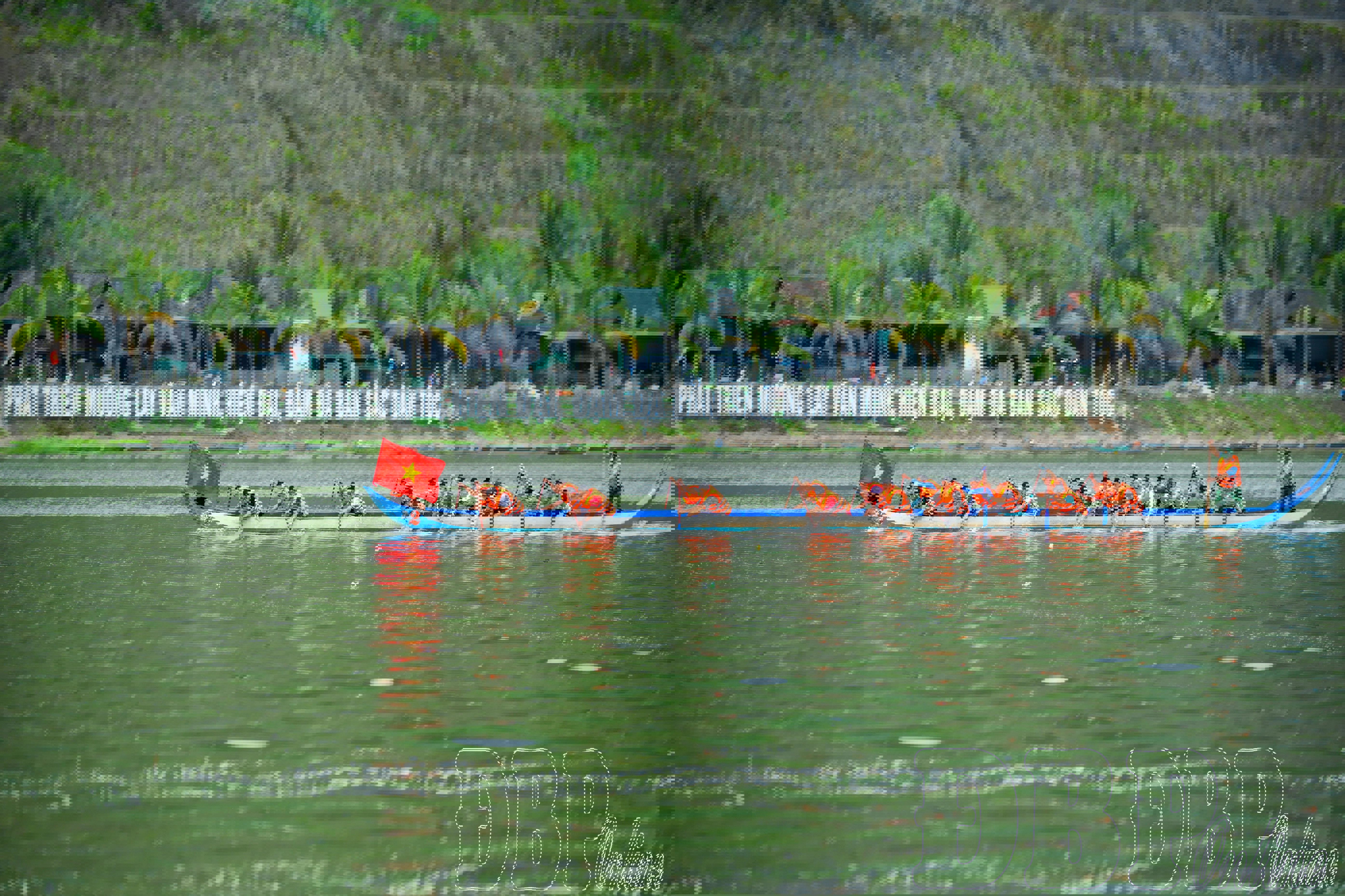 Vận động viên đua thuyền đuôi én trong khuôn khổ Lễ hội Đua thuyền đuôi én phường Mường Lay lần thứ XI, năm 2026.